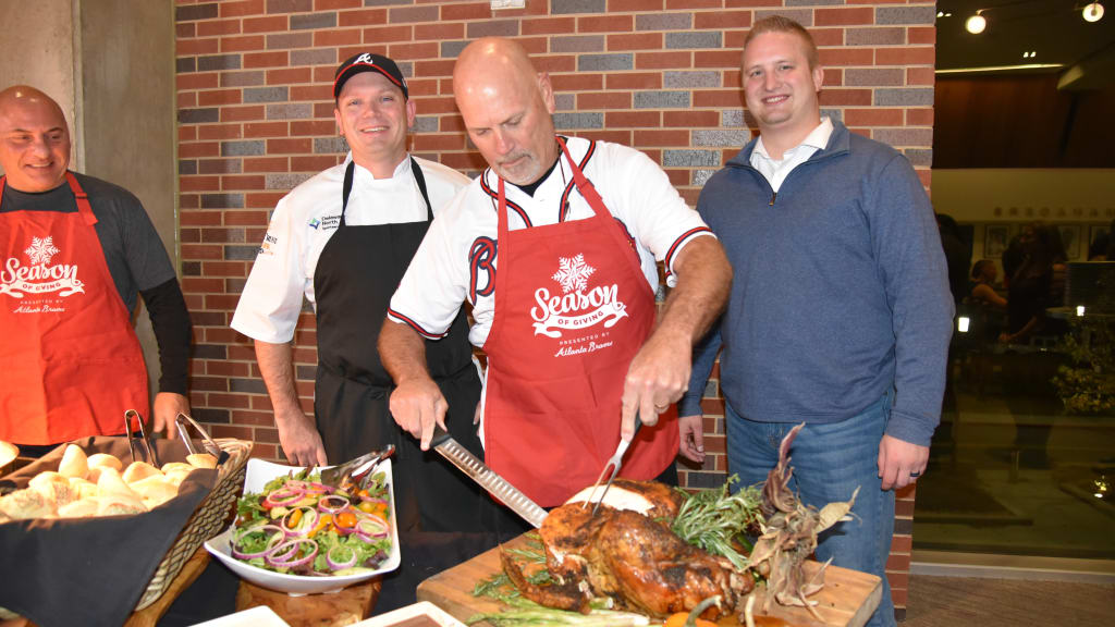 ATLANTA -- Wanting to show appreciation to those who sacrifice their time to protect Atlanta on holidays, the Braves provided a turkey dinner to 100 police officers who were scheduled to work on Thanksgiving Day. Braves manager Brian Snitker and his wife, Ronnie, joined Mike Foltynewicz and his wife, Brittany, to host the event, held at SunTrust Park on Nov. 15. All guests were treated to a traditional Thanksgiving meal and had the opportunity to interact with members of the Braves' organization in attendance. "Ronnie and I love this night every year," Snitker said. "We're just blessed to be able to come and help those guys. Everybody here recognizes all they do for us." Along with Snitker and Foltynewicz, some of the Braves alumni at this event included Bruce Benedict, Nick Green, Brian Jordan, Charlie Leibrandt, Greg McMichael and Terry Pendleton. Hall of Fame executive John Schuerholz welcomed the police officers and family members in attendance.