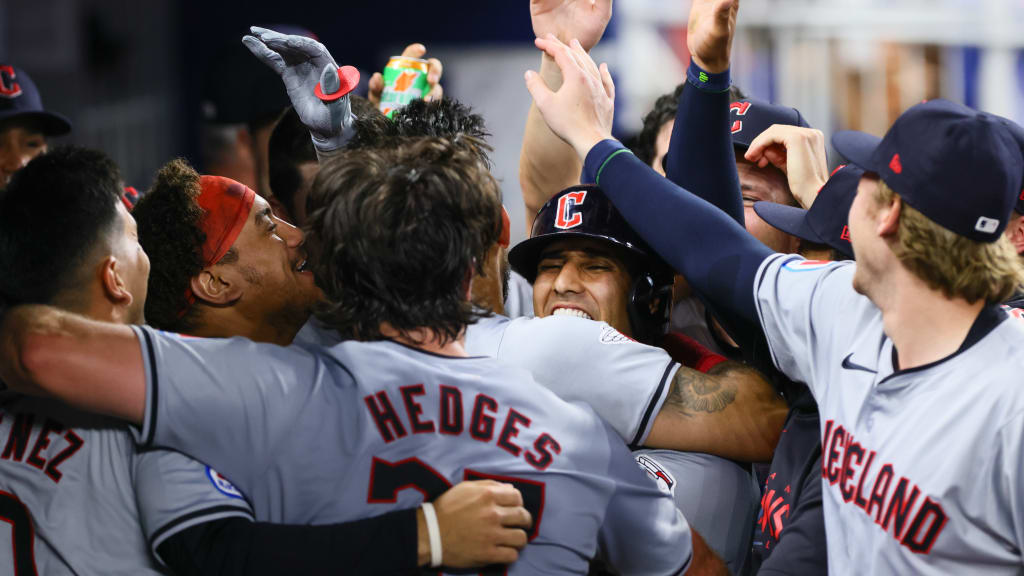That was the avenue the Guardians took with Brayan Rocchio on Friday night in the 3-2 loss against the Marlins. After he crushed a two-run homer to put Cleveland on the board first in the third inning, with family and friends in the stands, Rocchio skipped (or high-stepped? Just watch the video) down the length of the dugout with both arms raised for high fives, smiling the whole time. Austin Hedges, who reached base on a single before Rocchio drove him in, followed him and mimicked his entrance to the dugout -- though Hedges actually received high fives.