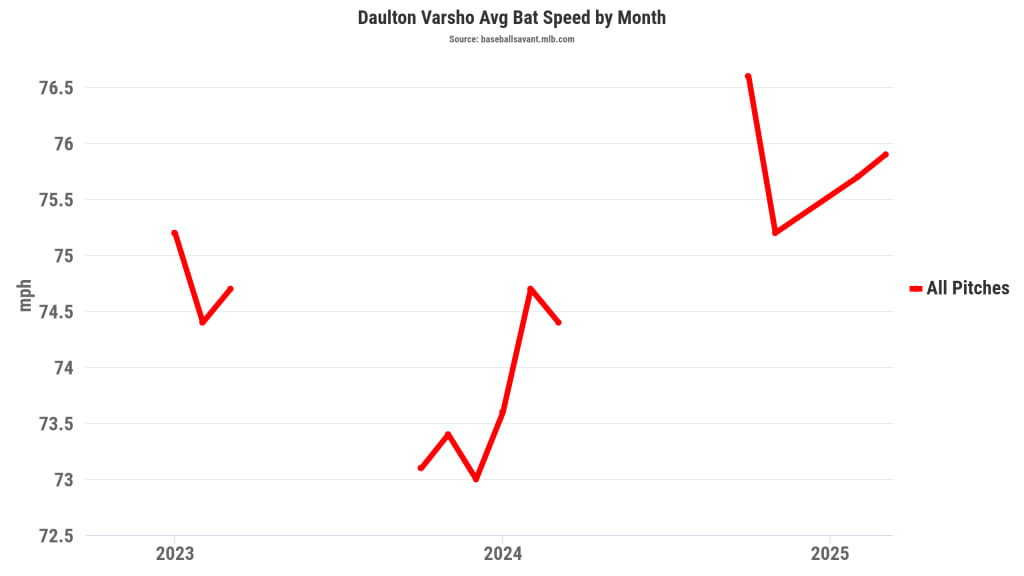 That’s fun. Don’t focus on it too much. Focus on the idea that if Varsho did what he did last year over a fuller season: That’s a 40-homer bat with elite center field defense. That’s borderline MVP territory – if he shows it.