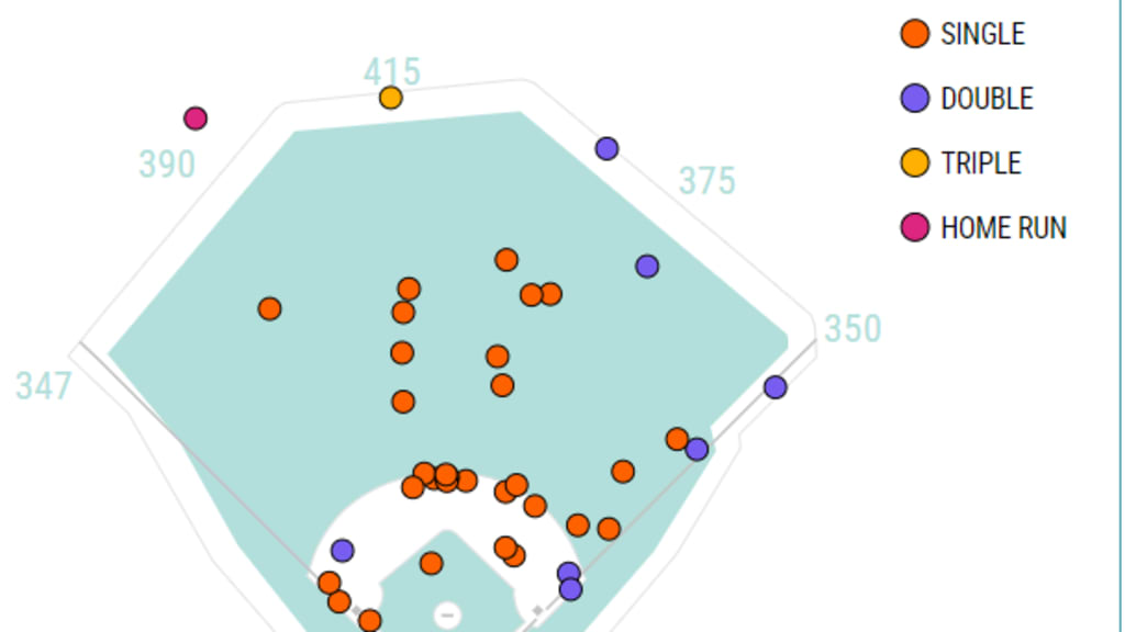 “Usually, if the pitch is moving in to me, I’m not trying to cheat and pull it -- that’s when you get topspin grounders,” Rodgers said. “I just feel like that’s not me. I can shoot it the other way. That’s the overall goal, to shoot it and stay in the middle. Certain guys who have some air on their heaters [fastballs at the top of the zone], those are the guys I think I can manipulate pulling the balls a little better. But I don’t necessarily like cheating because that’s not me.