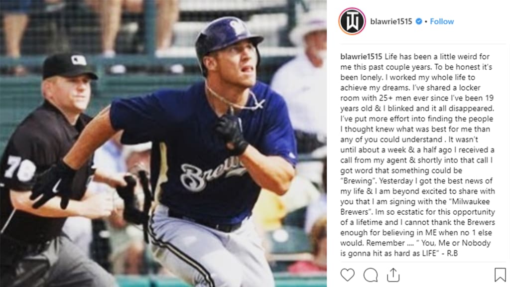 "I'm so ecstatic for this opportunity of a lifetime," Lawrie continued, "and I cannot thank the Brewers enough for believing in ME when no 1 [sic] else would."
