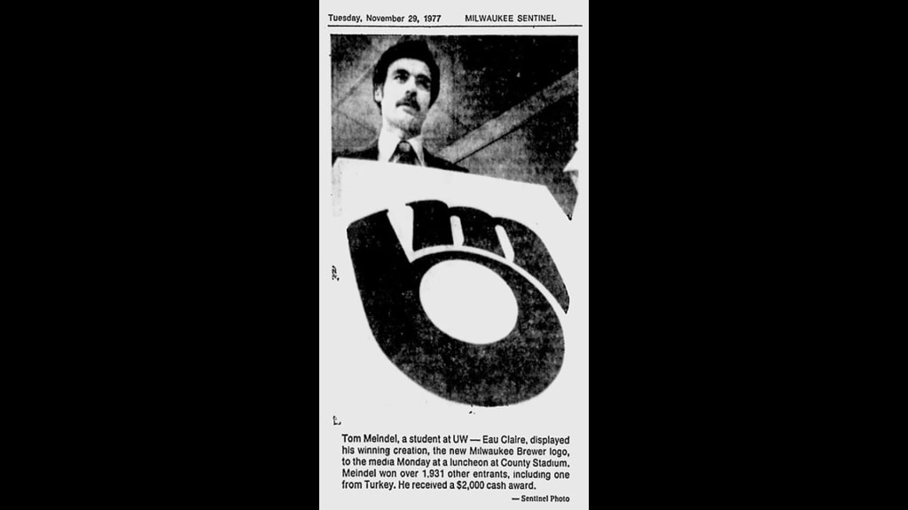 The Brewers’ now-iconic “ball-in-glove” logo was the creation of Tom Meindel, a 30-year-old University of Wisconsin-Eau Claire art student who submitted one of 1,932 entries in a team-sponsored contest in the fall of 1977. Eight losing seasons after arriving in Milwaukee, the Brewers wanted a replacement for the “Barrelman” logo. Meindel delivered a winner, an interlocking lowercase “m” and “b” that seamlessly formed the shape of a baseball glove.