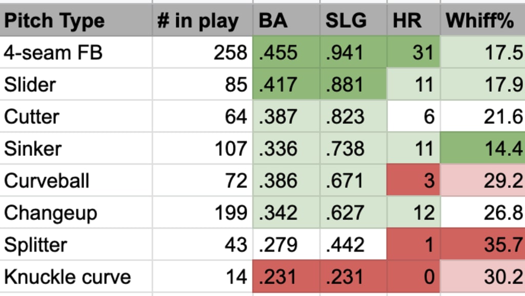 But that’s not what some of the Astros’ high-leverage arms will figure to do -- and it could spell trouble for Harper. Here’s how Harper has fared when putting the ball in play against each pitch type from right-handers since he joined the Phillies in 2019: