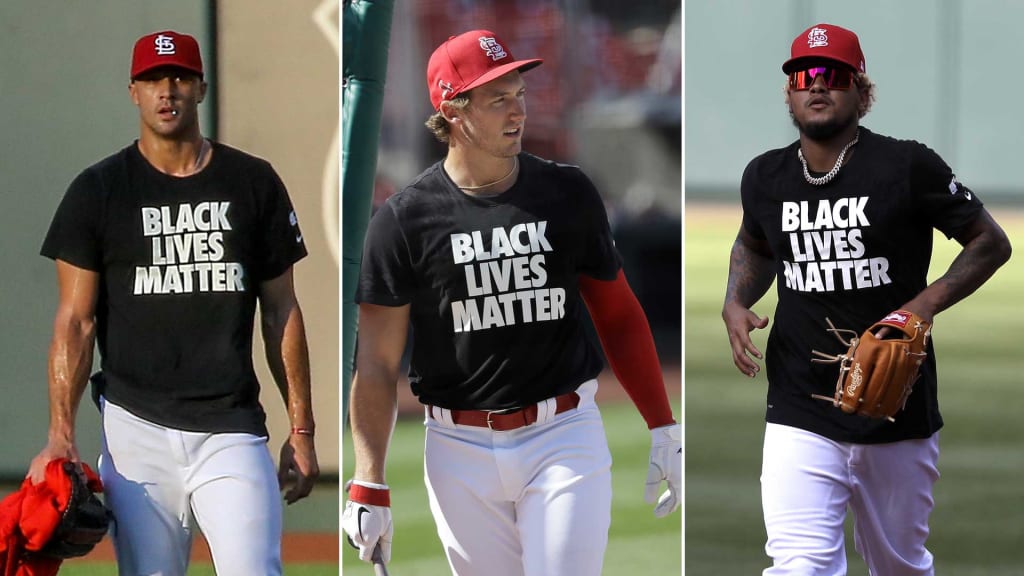 ST. LOUIS -- In an empty stadium but with the country watching as baseball began a regular season like no other, Matt Carpenter was the first one on the field Friday to take grounders at third base. What he was wearing, and what most of the Cardinals were wearing as they trickled out of the clubhouse for batting practice, was a show of support for their Black teammates.