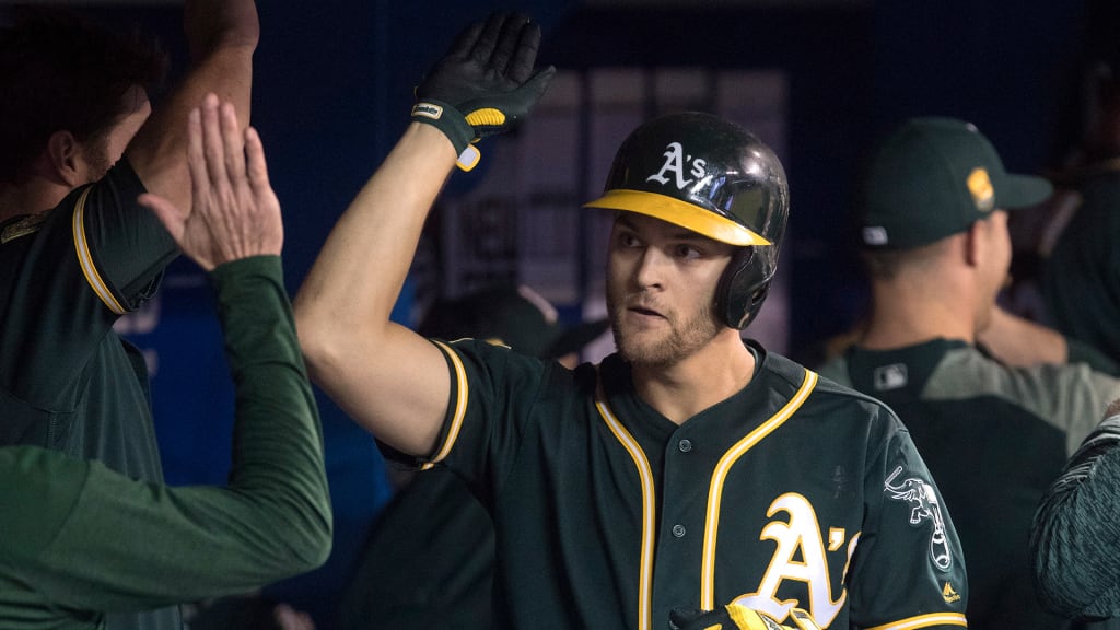 The A's recalled infield prospect Franklin Barreto from Triple-A Nashville to take Pinder's roster spot.