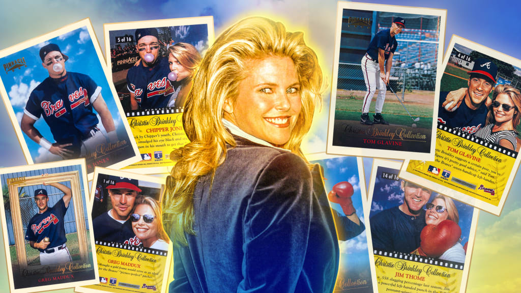 ","providerName":"Instagram","providerUrl":"https://www.instagram.com","thumbnail_url":"https://scontent-mia3-1.cdninstagram.com/v/t51.2885-15/sh0.08/e35/p640x640/12519593_580472522104735_156434244_n.jpg?_nc_ht=scontent-mia3-1.cdninstagram.com&_nc_cat=107&_nc_ohc=lHcHnQquasAAX-8AHyf&oh=69619a5502a0708edf962fa9a18ed834&oe=5F0BE64D","type":"oembed","width":658,"contentType":"rich"},{"__typename":"Markdown","content":"It also helped smooth over the spring photoshoots that players tend to approach the same way one does mopping the floor or doing the dishes.\n\n“They knew that the baseball players didn’t like to take these pictures, and \\[Pinnacle\\] said, ‘We thought that maybe if we had a Sports Illustrated swimsuit model taking the pictures they might come to get their picture taken,'” Brinkley said.\n\nThat proved true.\n\n“I think all of my teammates were pretty jealous I got to do a photoshoot with Christie Brinkley. I’ve never seen all of my teammates show up at any of my other photoshoots,” Chipper Jones said to MLB.com. “I was obviously very young and I’m sure some of my older teammates were like, ‘Why does he get to do it with Christie Brinkley?’”\n\nSo, Brinkley traveled down to Florida to shoot the cards before Cleveland and Atlanta met during the spring of ‘96 for a rematch of the previous fall’s World Series.","type":"text"},{"__typename":"Image","caption":"Brinkley made sure to capture Manny Ramirez with his legion of adoring fans","contextualCaption":null,"contextualAspectRatio":null,"credit":"","contentType":"Photography","format":"jpg","templateUrl":"https://img.mlbstatic.com/mlb-images/image/private/{formatInstructions}/mlb/x9xg9jh0ci3zbqlvumux","type":"image"},{"__typename":"Markdown","content":"While Brinkley’s name is what first drew people's attention, it's how she approached the set with a sense of fun and whimsy that is rare to find anywhere in the sports world that helps it stand apart a quarter century later.\n\nArmed with a dreamy sky-blue portrait backdrop, the model came up with images and scenes that would tell the story of each player she photographed.\n\n“She did her homework,” Laurie Goldberg, then the vice president of public relations for Pinnacle Brands said in the July 1996 issue of “Pinnacle” magazine. (Yes, in the ‘90s, baseball card companies had their own baseball card magazines.) “She came up with special setups for every single player and gave us a list of props -- probably the most extensive list of props we’ve ever used before -- for the shoot in Florida.”\n\nThe photos ranged from Tom Glavine -- a huge golfer -- using a _pitching_ wedge on the mound, to Ryan Klesko, surfing on the field.","type":"text"},{"__typename":"Image","caption":null,"contextualCaption":null,"contextualAspectRatio":null,"credit":null,"contentType":null,"format":"jpg","templateUrl":"https://img.mlbstatic.com/mlb-images/image/private/{formatInstructions}/mlb/yyewvkof11glqkwuelqa","type":"image"},{"__typename":"Markdown","content":"Fred McGriff -- the Crime Dog -- looks ready to open up the sexiest private eye company in existence as he dons a fedora years before they become the cringe-worthy object they are today. Meanwhile, Jason Schmidt looks every bit the confused parent of an overexcited child that every person who has ever spent time with a kid knows all too well:","type":"text"},{"__typename":"Image","caption":null,"contextualCaption":null,"contextualAspectRatio":null,"credit":null,"contentType":null,"format":"jpg","templateUrl":"https://img.mlbstatic.com/mlb-images/image/private/{formatInstructions}/mlb/ukmviq6hdc6ldqs5etzo","type":"image"},{"__typename":"Markdown","content":"Some seem strange, and perhaps a little embarrassing almost 25 years later. Carlos Baerga appears with his shirt open like he’s the cover model for a romance novel, with a heart hand-painted on his chest by the supermodel herself.\n\nStill, this was supposed to show that Baerga was the heart and soul of the Cleveland club, and Baerga’s wide smile reveals that he’s having a good time with it -- even if it looks silly and endlessly meme-able today.","type":"text"},{"__typename":"Image","caption":"Fabio who?","contextualCaption":null,"contextualAspectRatio":null,"credit":null,"contentType":"Photography","format":"jpg","templateUrl":"https://img.mlbstatic.com/mlb-images/image/private/{formatInstructions}/mlb/muvbskfmlmeuwqq3x7hh","type":"image"},{"__typename":"Markdown","content":"Marquis Grissom’s is perhaps one of the goofiest, showing the outfielder pretending to run the bases with a radar gun trained on him. (Though, you could be excused if you thought perhaps it was a hairdryer and they were trying to dry off his legs.)\n\n“I think that they all loved their storylines, whether it was like, 'OK, Marquis, I know you’re famous for running so fast around those bases, so I want to put a speed radar on you,'\" Brinkley said. \"And he was so cute about it.”","type":"text"},{"__typename":"Markdown","content":"Sure, the photos are silly, but they represent what these players did on the field as fun, visual puns. Because Kenny Lofton was a speedy basestealer, he was shown ... literally stealing bases.\n\nLong before dugout dances and players showing their goofy sides became the norm, Brinkley captured that spirit years before it was GIF-ed and endlessly shared on Twitter.","type":"text"},{"__typename":"Image","caption":null,"contextualCaption":null,"contextualAspectRatio":null,"credit":null,"contentType":null,"format":"jpg","templateUrl":"https://img.mlbstatic.com/mlb-images/image/private/{formatInstructions}/mlb/c9bxqiawnhwllqdqmhsq","type":"image"},{"__typename":"Markdown","content":"Photographing the reigning pennant winners meant Brinkley also snapped some of the biggest stars in the game at the outset of their careers.\n\nOne of those players was Jim Thome, who was coming off a 25-homer campaign in his first full big league season. The Cleve