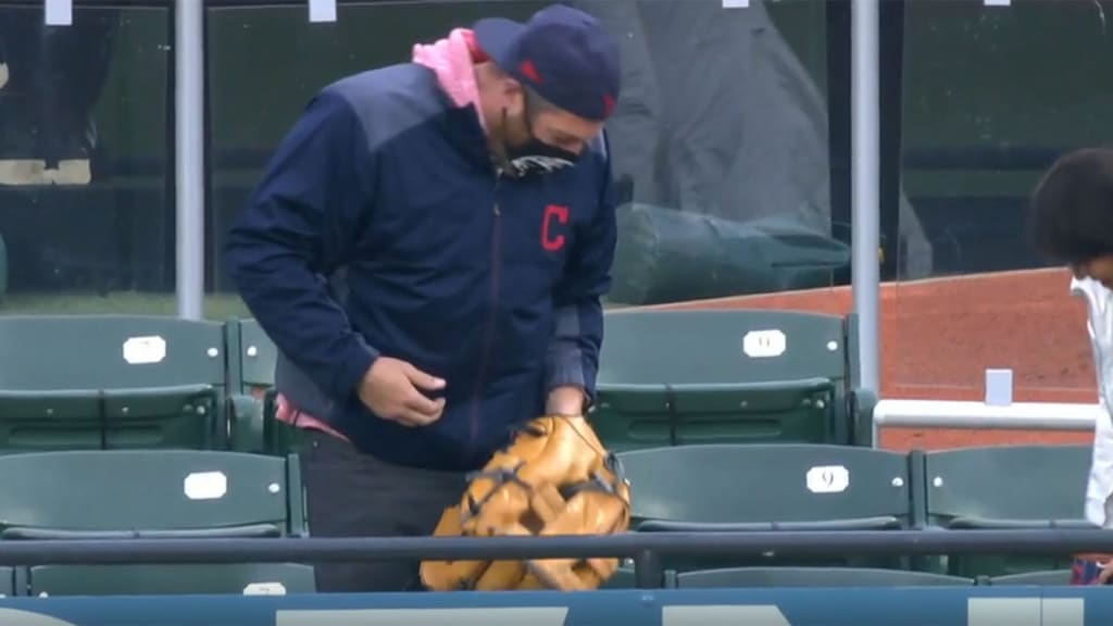 In the fifth inning of Saturday’s Yankees-Indians game at Progressive Field, one fan -- 34-year-old Greg Niemojewski -- flashed some cartoonishly large leather to catch a leadoff home run off the bat of New York's Aaron Hicks. Niemojewski used every inch of his mitt, extending his left arm and jumping slightly to make the catch in right-center field.