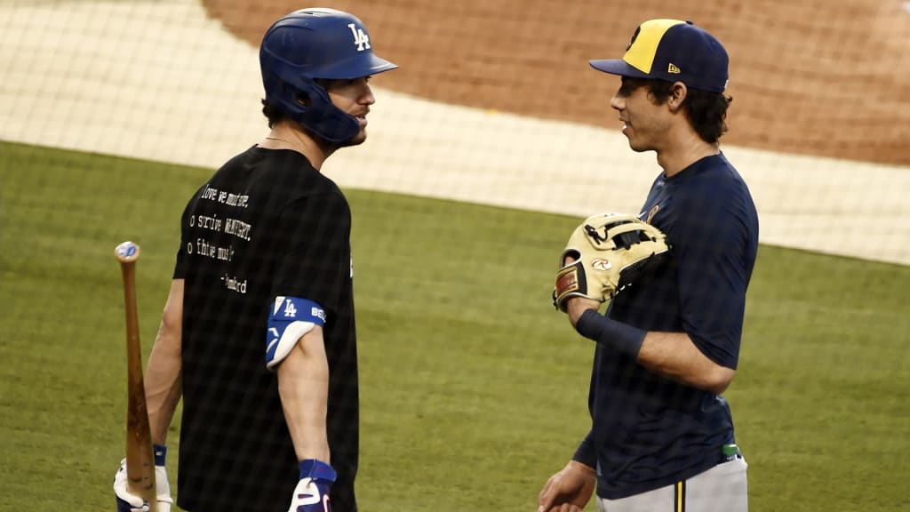 \n","providerName":"Twitter","providerUrl":"https://twitter.com","thumbnail_url":null,"type":"oembed","width":550,"contentType":"rich"},{"__typename":"Markdown","content":"Crazy thing is, Yelich predicted it.\n\nBack in early July as clubs reconvened in their home ballparks, Yelich pointed out the potential peril ahead. After a three-and-a-half-month hiatus due to the COVID-19 pandemic, they were embarking on a three-week Summer Camp ahead of a 60-game regular season, in which no one would have the time to recover from a slow start. Yelich put it plainly, saying, “You’re going to see really good players have really bad years.”\n\nYelich was right -- ask anyone from the Cubs' Javier Báez to the Rockies' Nolan Arenado -- but Yelich didn’t intend to be one of them. After beginning the season 1-for-27 with 12 strikeouts, Yelich got better as the year went on, but his strikeout rate went from about 20 percent in each of his first five full seasons in the Majors to 30.8 percent in 2020.\n\nAt the same time, Yelich was swinging less -- from 44 percent to 45 percent of the time in his first two seasons with the Brewers to 34.6 percent in 2020 – and whiffing more -- on 33.6 percent of swings, up from 23 percent in '18 and 28.2 percent in ‘19. When Yelich made contact, it was still loud; his 94 mph average exit velocity was third best among qualified hitters, according to Statcast, right ahead of the Angels' Mike Trout. But Yelich’s .259 batting average on balls in play was down from .355 last year.","type":"text"},{"__typename":"Video","contentDate":"2020-09-25T21:56:48.079Z","preferredPlaybackScenarioURL({\"preferredPlaybacks\":\"mp4AvcPlayback\"})":"https://mlb-cuts-diamond.mlb.com/FORGE/2020/2020-09/25/18ca3543-384308d2-eb905042-csvm-diamondx64-asset_1280x720_59_4000K.mp4","type":"video","description":"Christian Yelich launches a ball to deep center field for a home run, making it 3-0 in favor of the Brewers","displayAsVideoGif":false,"duration":"00:00:27","slug":"christian-yelich-homers-off-jack-flaherty","tags":[{"__typename":"InternalTag","slug":"season-2020","title":"Season 2020","type":"season"},{"__typename":"GameTag"},{"__typename":"PersonTag","slug":"playerid-592885","title":"Christian Yelich","person":{"__ref":"Person:592885"},"type":"player"},{"__typename":"TeamTag","slug":"teamid-158","title":"Milwaukee Brewers","team":{"__ref":"Team:158"},"type":"team"},{"__typename":"TaxonomyTag","slug":"hitting","title":"hitting","type":"taxonomy"},{"__typename":"TaxonomyTag","slug":"highlight","title":"highlight","type":"taxonomy"},{"__typename":"TaxonomyTag","slug":"in-game-highlight","title":"in-game highlight","type":"taxonomy"},{"__typename":"TaxonomyTag","slug":"home-run","title":"home run","type":"taxonomy"},{"__typename":"TaxonomyTag","slug":"send-to-news-mlb-feed","title":"Send To News MLB feed","type":"taxonomy"},{"__typename":"TaxonomyTag","slug":"2-yahoo-mlb-ads-feed","title":"2-Yahoo MLB Ads Feed","type":"taxonomy"},{"__typename":"TaxonomyTag","slug":"yahoo-in-game","title":"Yahoo In-Game","type":"taxonomy"},{"__typename":"TaxonomyTag","slug":"rivalry","title":"rivalry","type":"taxonomy"},{"__typename":"TaxonomyTag","slug":"international-feed","title":"International Partner feed","type":"taxonomy"},{"__typename":"TaxonomyTag","slug":"eclat-feed","title":"Eclat feed","type":"taxonomy"},{"__typename":"TaxonomyTag","slug":"yahoo-fantasy","title":"Yahoo Fantasy","type":"taxonomy"},{"__typename":"TaxonomyTag","slug":"1-yahoo-fantasy-feed","title":"1-Yahoo Fantasy Feed","type":"taxonomy"}],"thumbnail":{"__typename":"Thumbnail","templateUrl":"https://img.mlbstatic.com/mlb-images/image/private/{formatInstructions}/mlb/mrsdcluuhj7q10mtoge6"},"title":"Christian Yelich's solo home run","relativeSiteUrl":"/video/christian-yelich-homers-off-jack-flaherty"},{"__typename":"Markdown","content":"“You battle to the end to try to find a way,” Yelich said. “That kind of encapsulates our team a little bit. ... You never know when it’s going to change for you. For us, we’ve got a new season. We have an 0-0 record. Everybody’s slate is wiped clean. It’s what you can do with the opportunity that we’ve earned. It’s going to be a lot of fun. We have a big challenge ahead of us.”\n\nBrewers manager Craig Counsell sees more consistency from Yelich of late and said this week, “I feel like he can be a difference-maker in this series. I thought he had a good series in St. Louis \\[to finish the regular season\\], and I think he’s in a great place. The regular season for me is over. It’s in the past. I think Christian has a chance to come up huge for us.”\n\nThe Dodgers feel the same about Bellinger, who spent the winter reworking his swing after struggling in the 2019 postseason and continued to tinker as he fought through '20. Standing on the plate, backing off, fully upright, soften the knees. Bat on the shoulder, bat off the shoulder. Like Yelich, Bellinger's final results were fine, but nothing close to what the player himself expected. Bellinger hit .191 in at-bats resolved on breaking balls, down about 50 points from last year. His swing rates and strikeout rates remained steady, but the damage wasn’t there.","type":"text"},{"__typename":"Video","contentDate":"2020-09-24T03:47:58.943Z","preferredPlaybackScenarioURL({\"preferredPlaybacks\":\"mp4AvcPlayback\"})":"https://mlb-cuts-diamond.mlb.com/FORGE/2020/2020-09/23/de3f2651-b25a72d3-7f5b3bd4-csvm-diamondx64-asset_1280x720_59_4000K.mp4","type":"video","description":"Cody Bellinger goes deep over the right-center-field wall and trims the Dodgers' deficit to 4-3 in the bottom of the 7th inning","displayAsVideoGif":false,"duration":"00:00:51","slug":"cody-bellinger-homers-12-on-a-fly-ball-to-right-center-field","tags":[{"__typename":"InternalTag","slug":"season-2020","title":"Season 2020","type":"season"},{"__typename":"GameTag"},{"__typename":"PersonTag","slug":"playerid-641355","title":"Cody Bellinger","person":{"__