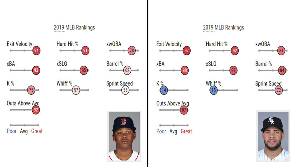 But a more aggressive Moncada turned it around last year and began pounding the ball the way scouting reports dictated he should. Back in Boston, Devers -- who had jumped into the spotlight by hitting an opposite-field homer off a 102.8 mph Aroldis Chapman fastball in 2017, but looked pedestrian at the plate in ’18 -- was also busting out. By season’s end, their batter profiles, courtesy of Baseball Savant’s Statcast percentile sliders, looked eerily similar.