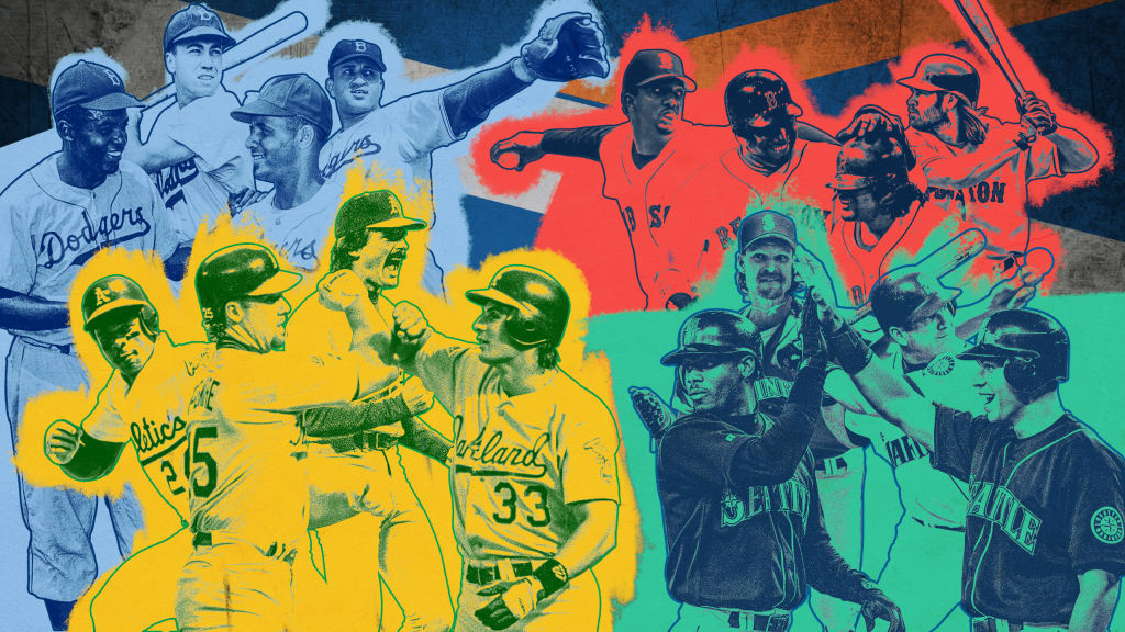 \n\n","providerName":"Twitter","providerUrl":"https://twitter.com","thumbnail_url":null,"type":"oembed","width":550,"contentType":"rich"},{"__typename":"Markdown","content":"Dave Stewart and mustachioed Dennis Eckersley were on the mound, giving the team a little bit of heat and edge to go with all that power at the plate, too.\n\nThings got even better when Rickey Henderson returned to the team in 1989. Frankly, the A's were more like an Olympic Dream Team than an actual baseball team.","type":"text"},{"__typename":"Video","contentDate":"1982-08-27T19:44:00Z","preferredPlaybackScenarioURL({\"preferredPlaybacks\":\"mp4AvcPlayback\"})":"http://mediadownloads.mlb.com/mlbam/2015/08/26/mlbtv_413761583_1800K.mp4","type":"video","description":"A look back at Rickey Henderson breaking Lou Brock's single-season stolen base record in 1982","displayAsVideoGif":false,"duration":"00:01:07","slug":"henderson-breaks-brock-s-record-c413761583","tags":[{"__typename":"InternalTag","slug":"hbmig-subject-mlbcom-no-search-1200","title":"HBmig MLBCOM_NO_SEARCH_1200","type":"unsupported"},{"__typename":"InternalTag","slug":"hbmig-subject-mlbcom-feature","title":"HBmig MLBCOM_FEATURE","type":"unsupported"},{"__typename":"InternalTag","slug":"hbmig-subject-mlbcom-no-search-600","title":"HBmig MLBCOM_NO_SEARCH_600","type":"unsupported"},{"__typename":"PersonTag","slug":"playerid-115749","title":"Rickey Henderson","person":{"__ref":"Person:115749"},"type":"player"},{"__typename":"InternalTag","slug":"hbmig-subject-mlbmobile-no-search","title":"HBmig MLBMOBILE_NO_SEARCH","type":"unsupported"},{"__typename":"TeamTag","slug":"teamid-133","title":"Oakland Athletics","team":{"__ref":"Team:133"},"type":"team"},{"__typename":"InternalTag","slug":"hbmig-team-id-133","title":"HBmig 133","type":"unsupported"},{"__typename":"InternalTag","slug":"hbmig-combined-media-state-media-archive","title":"HBmig MEDIA_ARCHIVE","type":"unsupported"},{"__typename":"InternalTag","slug":"hbmig-subject-mlbcom-vod-hd","title":"HBmig MLBCOM_VOD_HD","type":"unsupported"},{"__typename":"TaxonomyTag","slug":"this-date-in-history","title":"This Date in History","type":"taxonomy"}],"thumbnail":{"__typename":"Thumbnail","templateUrl":"https://img.mlbstatic.com/mlb-images/image/private/{formatInstructions}/mlb/zxoau3holliz4pg9whgp"},"title":"Henderson breaks Brock's record","relativeSiteUrl":"/video/henderson-breaks-brock-s-record-c413761583"},{"__typename":"Markdown","content":"**1990s Mariners**\n\nWith apologies to every other club on this list, this is the coolest team in history. With Ken Griffey Jr. at the center of pop culture, how could they be anything else? With a sly grin, backward hat, and the sweetest swing in baseball history, he inspired an entire generation to race to the TV every time he stepped to the plate.\n\nGriffey was so popular, he was the villain in \"Little Big League,\" and kids still wanted his Mariners to beat Billy Heywood's Twins!","type":"text"},{"__typename":"Video","contentDate":"1997-09-07T03:33:00Z","preferredPlaybackScenarioURL({\"preferredPlaybacks\":\"mp4AvcPlayback\"})":"http://mediadownloads.mlb.com/mlbam/2013/06/24/mlbtv_seamin_28314617_300K.mp4","type":"video","description":"9/7/97: Ken Griffey Jr. goes yard off of Bob Tewksbury for his 50th home run of the season, notching a new career high for himself","displayAsVideoGif":false,"duration":"00:00:49","slug":"griffey-s-50th-home-run-of-1997-c28314617","tags":[{"__typename":"InternalTag","slug":"hbmig-away-team-id-136","title":"HBmig away_team_id: 136","type":"unsupported"},{"__typename":"PersonTag","slug":"playerid-115135","title":"Ken Griffey Jr.","person":{"__ref":"Person:115135"},"type":"player"},{"__typename":"TeamTag","slug":"teamid-136","title":"Seattle Mariners","team":{"__ref":"Team:136"},"type":"team"},{"__typename":"InternalTag","slug":"hbmig-team-id-136","title":"HBmig Seattle Mariners","type":"unsupported"},{"__typename":"InternalTag","slug":"hbmig-subject-mlbcom-feature","title":"HBmig MLBCOM_FEATURE","type":"unsupported"},{"__typename":"InternalTag","slug":"hbmig-home-team-id-142","title":"HBmig home_team_id: 142","type":"unsupported"},{"__typename":"InternalTag","slug":"hbmig-combined-media-state-media-archive","title":"HBmig MEDIA_ARCHIVE","type":"unsupported"},{"__typename":"GameTag"},{"__typename":"TaxonomyTag","slug":"home-run","title":"home run","type":"taxonomy"},{"__typename":"TaxonomyTag","slug":"classic","title":"classic","type":"taxonomy"},{"__typename":"TaxonomyTag","slug":"milestone","title":"milestone","type":"taxonomy"},{"__typename":"TaxonomyTag","slug":"highlight","title":"highlight","type":"taxonomy"}],"thumbnail":{"__typename":"Thumbnail","templateUrl":"https://img.mlbstatic.com/mlb-images/image/private/{formatInstructions}/mlb/ljrwvd8houvubvogbin6"},"title":"Griffey's 50th home run of 1997","relativeSiteUrl":"/video/griffey-s-50th-home-run-of-1997-c28314617"},{"__typename":"Markdown","content":"But Griffey wasn’t alone. At some point, goatees were only worn by tough dudes and not just guys in cargo shorts at the hardware store, and Jay Buhner's scruff and shaved head were at the center of this development.\n\nRandy Johnson was the most terrifying player to ever step on the mound -- armed with a killer fastball, biting slider, and the angriest mullet in history, batters literally cowered in fear when facing him. And Edgar Martinez's swing saved the team.","type":"text"},{"__typename":"Video","contentDate":"2017-08-10T18:46:54Z","preferredPlaybackScenarioURL({\"preferredPlaybacks\":\"mp4AvcPlayback\"})":"http://mediadownloads.mlb.com/mlbam/mp4/2017/08/10/1709699483/1502390528262/asset_450K.mp4","type":"video","description":"Mariners legend Edgar Martinez looks back on the hit that defined his extraordinary career","displayAsVideoGif":false,"duration":"00:02:48","slug":"edgar-the-double-c1709699483","tags":[{"__typename":"InternalTag","slug":"hbmig-subject-mlbcom-feature","title":"HBmig MLBCOM_FEATURE","type":"unsupported"}