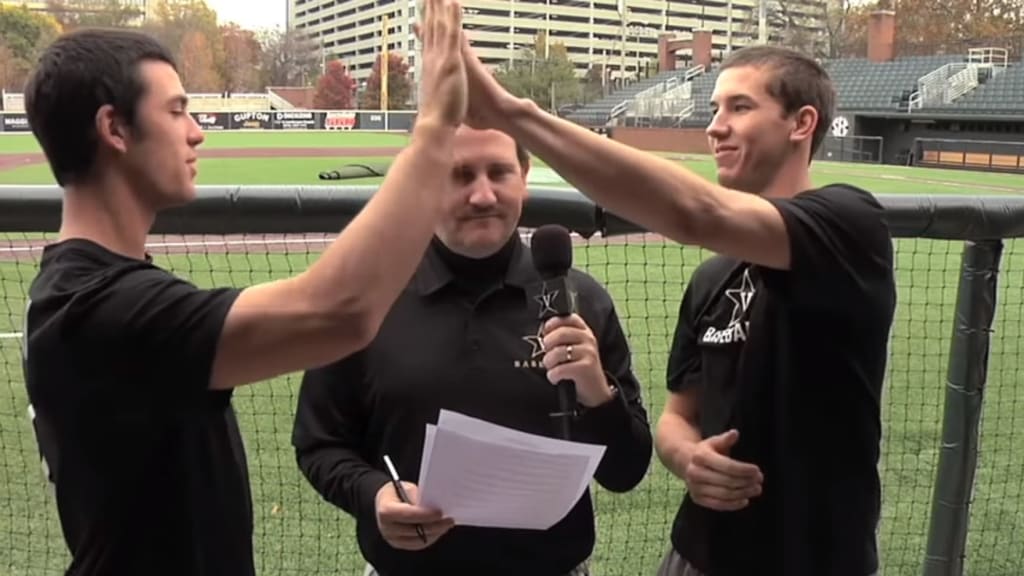 But 7 years ago, the two foes were actually on the same side: They both were baseball players at Vanderbilt University. Not only that, they were also freshman roommates. And as is tradition at Vandy, they played in the Freshman College Roommate Newlywed Game. It is, um, a sight to behold.