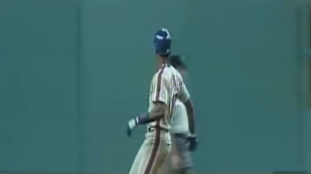 Listen to Fran Healy's call: "That balll ... is, uh, outtaa heeere." He's not even sure what happened. Darryl stopped at second base, as the ball inexplicably came back into the outfield -- thrown back by an alien on some distant planet.