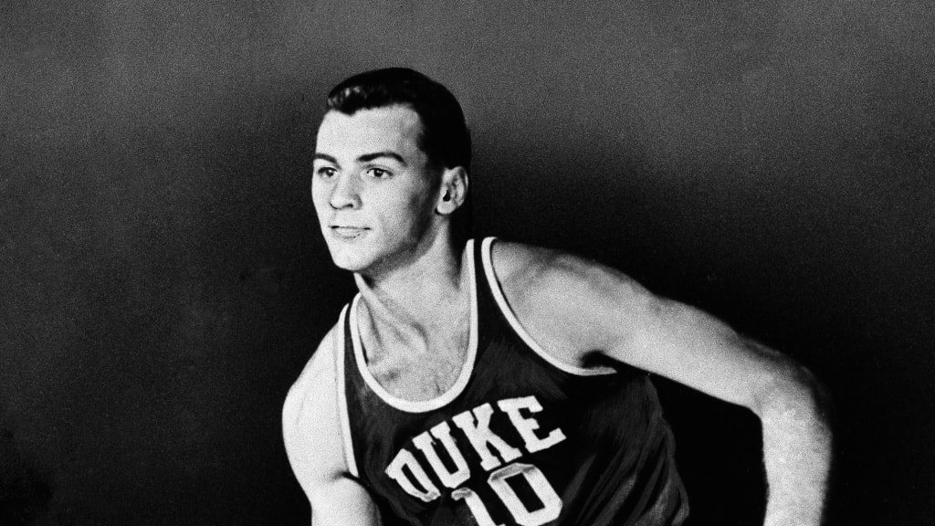 After a stellar career at Duke -- his No. 10 was the first to ever hang from the rafters at Cameron Indoor Stadium -- Groat was selected third overall by the Fort Wayne Pistons in the 1952 NBA Draft. But there was one problem: He hadn't completed all of his coursework, and his father expected him to graduate.