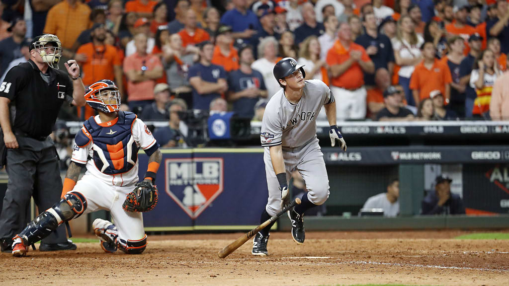 LeMahieu sent Osuna’s 10th offering of the five-and-a-half-minute-long at-bat over the glove of a leaping George Springer and into the right-field seats, tying the game and extending the Yankees’ season, albeit temporarily. Less than 20 minutes later, closer Aroldis Chapman -- who had never allowed a homer in 13 previous postseason appearances with the Yankees -- served up a walk-off longball on an 84 mph slider to José Altuve.