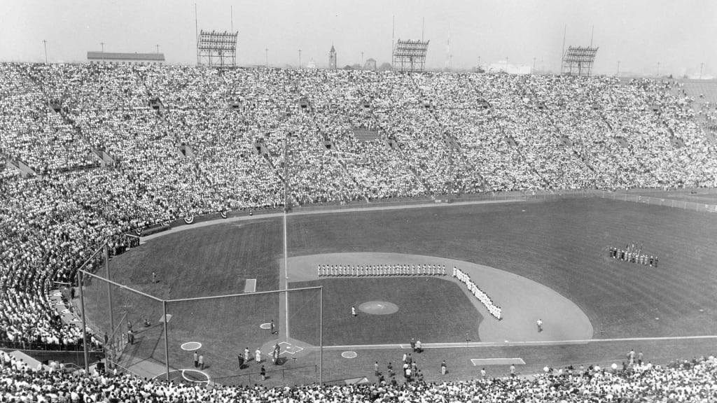 The Dodgers made their move from Brooklyn and played their first game in Los Angeles on April 18, 1958, at the L.A. Memorial Coliseum. For a while, the Dodgers thought they would be playing at the Rose Bowl in Pasadena, but talks broke down late in the process. Because they were playing in a football stadium, the Dodgers played in front of 78,672 fans on Opening Day -- which, at the time, was a league record for a single game. The Dodgers beat the San Francisco Giants, 6-5, in the game, but the real win was starting a new life on the West Coast.