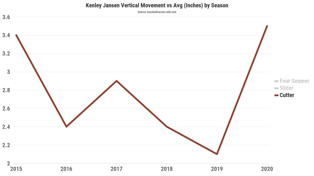 Opponents have swung 102 times against Jansen in 2020, and Padres outfielder Trent Grisham is the only one to produce a hard-hit ball once the bat left his shoulder. Twenty of the 43 Jansen has faced have either struck out or popped up (the next best thing), and Jansen is racking up outs with the slowest cutter he’s ever thrown. Both Jansen and Roberts have said that the movement on Jansen’s cutter is a better barometer than its velocity, and last year his signature pitch suffered in both regards. Jansen’s cutter is still down a few ticks (he’s still recovering from a positive case of COVID-19), but it’s zipping through the zone in other ways.
