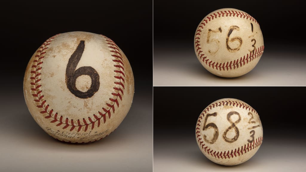 Fun facts: An entire bag of baseballs might have been necessary to keep up with the pace Don Drysdale maintained in 1968. These three baseballs commemorate his record sixth consecutive shutout, a 5-0 decision over Pittsburgh on June 4; his new record of 56 1/3 consecutive scoreless innings, established on June 8 against Philadelphia, passing Walter Johnson; and the total of 58 2/3 straight innings when the streak ended.