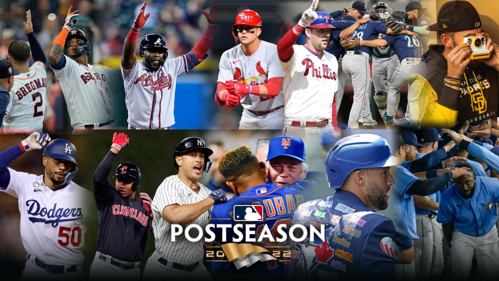 \n","providerName":"Twitter","providerUrl":"https://twitter.com","thumbnail_url":null,"type":"oembed","width":550,"contentType":"rich"},{"__typename":"Markdown","content":"**Braves** \nThough it looks a little like “The Chop” the celebratory motion you see Braves players making after recording a big hit, it is more like a slash. How did it develop? Backup outfielder Guillermo Heredia saw a social media influencer creating videos with swords and decided to get a couple plastic ones. Heredia’s pink swords became recognized throughout the baseball world during last year’s postseason. The pink swords influenced the creation of the “Slash” or “Sword Chop,” which will be seen again this October.\n\n**Mets** \nDo something great, earn a hug from Buck Showalter. That’s how it’s gone recently for the Mets, who lined up for individual hugs following their playoff clinch in Milwaukee in September. A week later, when Eduardo Escobar drove home all five runs in a key Mets victory, he returned the favor by wrapping Showalter in a bear hug and kissing him on the neck. There is no more wholesome way to celebrate a win.","type":"text"},{"__typename":"Video","contentDate":"2022-09-20T02:31:18.078Z","preferredPlaybackScenarioURL({\"preferredPlaybacks\":\"mp4AvcPlayback\"})":"https://mlb-cuts-diamond.mlb.com/FORGE/2022/2022-09/19/1b9db541-af5f6c9e-54f1edcb-csvm-diamondx64-asset_1280x720_59_4000K.mp4","type":"video","description":"Adam Ottavino strikes out Hunter Renfroe to seal the Mets' 7-2 win and clinch a postseason berth in Max Scherzer's 200th win","displayAsVideoGif":false,"duration":"00:01:39","slug":"hunter-renfroe-strikes-out-swinging-awlo9l","tags":[{"__typename":"InternalTag","slug":"season-2022","title":"Season 2022","type":"season"},{"__typename":"GameTag"},{"__typename":"PersonTag","slug":"playerid-493603","title":"Adam Ottavino","person":{"__ref":"Person:493603"},"type":"player"},{"__typename":"TeamTag","slug":"teamid-121","title":"New York Mets","team":{"__ref":"Team:121"},"type":"team"},{"__typename":"TaxonomyTag","slug":"pitching","title":"pitching","type":"taxonomy"},{"__typename":"TaxonomyTag","slug":"highlight","title":"highlight","type":"taxonomy"},{"__typename":"TaxonomyTag","slug":"in-game-highlight","title":"in-game highlight","type":"taxonomy"},{"__typename":"TaxonomyTag","slug":"path-to-the-postseason","title":"Path to the Postseason","type":"taxonomy"},{"__typename":"TaxonomyTag","slug":"eclat-feed","title":"Eclat feed","type":"taxonomy"},{"__typename":"TaxonomyTag","slug":"international-feed","title":"International Partner feed","type":"taxonomy"},{"__typename":"TaxonomyTag","slug":"final-play","title":"final play","type":"taxonomy"}],"thumbnail":{"__typename":"Thumbnail","templateUrl":"https://img.mlbstatic.com/mlb-images/image/upload/{formatInstructions}/mlb/keq1tg1gl8gcaudbqjva"},"title":"Mets clinch playoff spot","relativeSiteUrl":"/video/hunter-renfroe-strikes-out-swinging-awlo9l"},{"__typename":"Markdown","content":"**Phillies** \nThe Phillies donned a “home run hat” in 2021, and they discussed coming up with something new in 2022. But something new never happened, so the Phillies celebrate home runs with various fist bumps, hand shakes and gestures.\n\n“You hope that those things come up organically,” Rhys Hoskins said earlier this season. “You don’t want it to feel forced. Nothing’s really come up. If it comes up at some point, great. We’ll try to hit some more homers.”\n\n**Cardinals** \nWhen the Cardinals hit an offensive slump in July, several players and manager Oliver Marmol talked repeatedly about the team needing to “grind out at bats.” Somehow, that phrase morphed into the act of grinding pepper by twisting fists in opposite directions. Often, Cardinals players will celebrate big hits or home runs by making the pepper grinder motion back toward teammates in the dugout. Playful outfielder Lars Nootbaar was a big proponent of the “pepper grinder” celebration, and he was even given a pepper grinder as a birthday gift earlier in the season. For a lengthy stretch in August and September, the Cardinals kept that gifted pepper grinder in the dugout and used it to celebrate big moments, like Albert Pujols’ game-winning home run at Wrigley.","type":"text"},{"__typename":"OEmbed","html":"