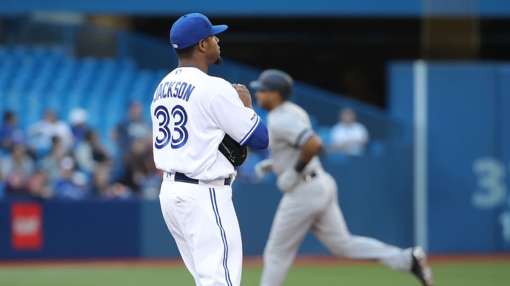 Toronto’s offense couldn’t muster much against former Blue Jays left-hander J.A. Happ -- a solo homer from Eric Sogard in the sixth inning the exception -- and the contrast between the starters was vast. Jackson recorded 10 outs, allowing six runs (two earned) on six hits with two walks and three strikeouts, lowering his ERA to 11.90.