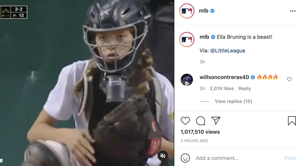 \n","providerName":"Twitter","providerUrl":"https://twitter.com","thumbnail_url":null,"type":"oembed","width":550,"contentType":"rich"},{"__typename":"Markdown","content":"\"She hustles, she is all over the place, she is well-schooled and she frames the ball as well as anyone we've seen in this tournament,\" the announcer said _right_ before Bruning then showed off her arm by nailing the runner at first base.\n\nHer teammates agree with the assessment.\n\n“She blocks everything and not all catchers can do that,\" Dylan Regala told Big Country Sports.\n\n“Ella is just awesome! She’s a ‘stud-ette,’ as we call her,\" Reggie Regala added. \"She’s just one of the guys and I’m telling you, I mean when we play these other teams, they’re shocked how good she is. She is just an awesome player and we’re just glad to have her on our team.”\n\nEven big leaguers are getting in on the action. Cubs catcher Willson Contreras offered up some fire emojis on Instagram.","type":"text"},{"__typename":"Image","caption":null,"contextualCaption":null,"contextualAspectRatio":null,"credit":null,"contentType":null,"format":"png","templateUrl":"https://img.mlbstatic.com/mlb-images/image/private/{formatInstructions}/mlb/ie3tvfpjkhrjrnce8cpn","type":"image"},{"__typename":"Markdown","content":"After defeating Colorado, 3-0, on Monday night, Bruning and her Texas West teammates lost to Louisiana, 6-2, in the finals of the Southwest region Tuesday night, but they will still be heading to Williamsport, where Bruning can show off her skills at the Little League World Series.","type":"text"}],"relativeSiteUrl":"/news/ella-bruning-is-texas-west-little-league-s-star-catcher","contentType":"news","subHeadline":"Even Willson Contreras is taking note","summary":"They say that catcher is one of the most difficult positions to learn, and nearly impossible to master. It's why Jeff Mathis and José Molina carved out such long big league careers.\nWell, there's a new player who is turning the tools of ignorance into an art and drawing rave","tagline({\"formatString\":\"none\"})":null,"tags":[{"__typename":"InternalTag","slug":"storytype-article","title":"Article","type":"article"},{"__typename":"ContributorTag","slug":"michael-clair","title":"Michael Clair","type":"contributor"},{"__typename":"TaxonomyTag","slug":"offbeat","title":"offbeat","type":"taxonomy"},{"__typename":"TaxonomyTag","slug":"little-league","title":"Little League","type":"taxonomy"}],"type":"story","thumbnail":"https://img.mlbstatic.com/mlb-images/image/private/{formatInstructions}/mlb/fmkw2l0gkh2nf4c3tgom","title":"Ella Bruning is Texas West Little League's star catcher"},"getHeaderFromForgePath({\"contentSource\":\"MLB\",\"headerPath\":\"/_navs/header/mlb/global-nav\",\"locale\":\"en-US\",\"paletteKey\":\"mlb-base-palette\",\"propertiesKey\":\"mlb-global-properties\"})":{"__typename":"Header","navigation":[{"__typename":"NavItem","customPropertiesString":"align:right;","icon":null,"linkTarget":null,"linkText":"MLB.TV","linkUrl":"https://www.mlb.com/tv?&affiliateId=mlbMENUtv","placement":"right","visible":"true","subNav":[{"__typename":"SubnavColumn","title":null,"navigation":[{"__typename":"NavItem","placement":null,"linkText":"Buy MLB.TV","linkUrl":"/live-stream-games/subscribe?&affiliateId=mlbMENUtv","linkTarget":null,"visible":"true","icon":null,"tooltip":null,"customPropertiesString":null},{"__typename":"NavItem","placement":null,"linkText":"Buy At Bat","linkUrl":"/live-stream-games/subscribe/at-bat?&affiliateId=mlbMENUtv","linkTarget":null,"visible":null,"icon":null,"tooltip":null,"customPropertiesString":null},{"__typename":"NavItem","placement":null,"linkText":"Buy MLB Network","linkUrl":"/live-stream-games/subscribe/mlbnetwork?&affiliateId=mlbMENUtv","linkTarget":null,"visible":null,"icon":null,"tooltip":null,"customPropertiesString":null},{"__typename":"NavItem","placement":null,"linkText":"All Packages","linkUrl":"/live-stream-games/products?&affiliateId=mlbMENUtv","linkTarget":null,"visible":"false","icon":null,"tooltip":null,"customPropertiesString":null},{"__typename":"NavItem","placement":null,"linkText":"Watch & Listen","linkUrl":"/live-stream-games?&affiliateID=mlbMENUtv","linkTarget":null,"visible":"true","icon":null,"tooltip":null,"customPropertiesString":null},{"__typename":"NavItem","placement":null,"linkText":"Help Center","linkUrl":"https://support.mlb.com/s/?&affiliateID=mlbMENUtv","linkTarget":null,"visible":"true","icon":null,"tooltip":null,"customPropertiesString":null}]}]},{"__typename":"NavItem","customPropertiesString":"align:right;","icon":null,"linkTarget":null,"linkText":"Tickets","linkUrl":"/tickets","placement":"right","visible":null,"subNav":[{"__typename":"SubnavColumn","title":null,"navigation":[{"__typename":"NavItem","placement":null,"linkText":"All-Star Tickets","linkUrl":"/all-star/tickets","linkTarget":null,"visible":"true","icon":null,"tooltip":null,"customPropertiesString":"expires:1752631200;"},{"__typename":"NavItem","placement":null,"linkText":"Home Run Derby Ticket Offers","linkUrl":"/tickets/fan-value/home-run-derby-offers","linkTarget":null,"visible":null,"icon":null,"tooltip":null,"customPropertiesString":"expires:1753210800;"},{"__typename":"NavItem","placement":null,"linkText":"East-West Classic","linkUrl":"/events/rickwood/tickets","linkTarget":null,"visible":null,"icon":null,"tooltip":null,"customPropertiesString":"expires:1750359600;"},{"__typename":"NavItem","placement":null,"linkText":"Spring Training","linkUrl":"/tickets/spring-training","linkTarget":null,"visible":"true","icon":null,"tooltip":null,"customPropertiesString":"expires:1742958000;"},{"__typename":"NavItem","placement":null,"linkText":"Postseason Tickets","linkUrl":"/postseason/tickets","linkTarget":null,"visible":"false","icon":null,"tooltip":null,"customPropertiesString":"expires:1762145940;"},{"__typename":"NavItem","placement":null,"linkText":"Postseason VIP Tickets","linkUrl":"/tickets/on-location-experiences","linkT