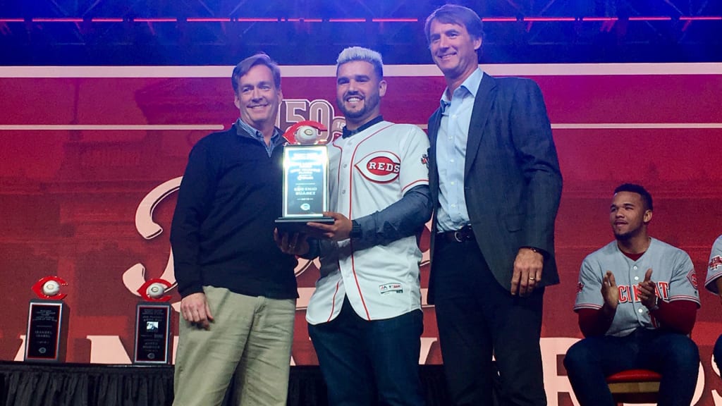 CINCINNATI -- One of the many highlights featured at Redsfest every winter is the announcement of the award winners from the prior season, which provides the perfect opportunity for the Reds and their fans to honor the players in person. Because nearly every member of the Major League roster, plus all of the team's top prospects, participate in Redsfest every year, it's easy to gather the group of award winners on stage for a formal presentation.