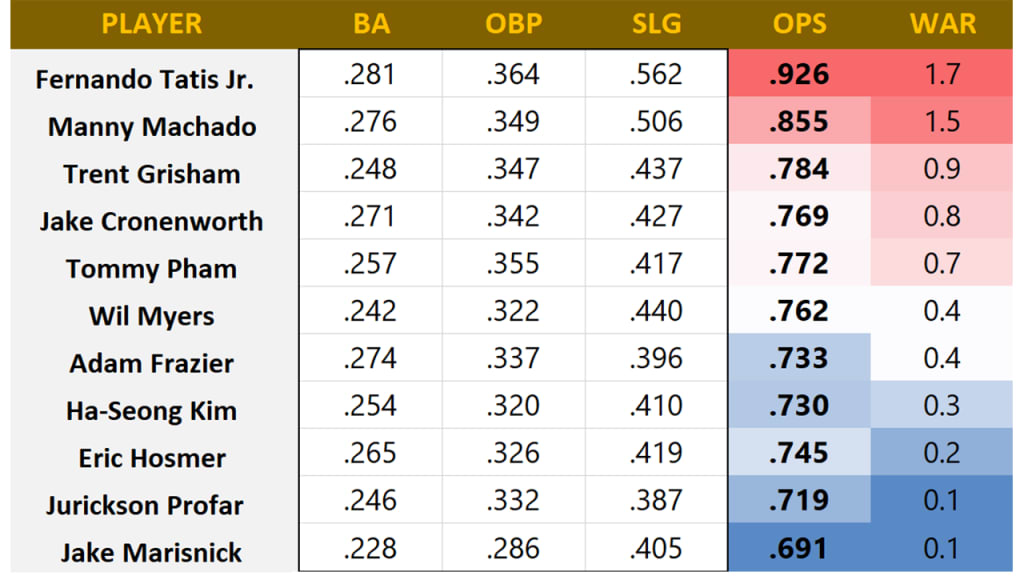 If Tatis is in the infield, then Hosmer is at best the fourth-best infield option, and potentially as low as sixth if you value the defensive versatility of Kim and Cronenworth more. If Tatis is not in the infield, a lot more options open up. Uncomfortable conversations need not be had.