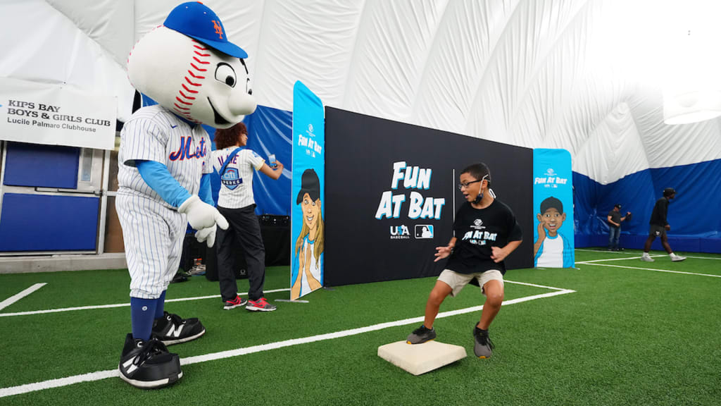 Dozens of children from the Kips Bay club attended the announcement, held in the facility’s Lucile Palmaro Clubhouse, donning matching “Fun At Bat” T-shirts. After a surprise visit from Mets mascot Mr. Met, the kids warmed up as a group, ran drills across the field, hit balls off of tees and played catch with Seiler in a demonstration of the new program’s curriculum.