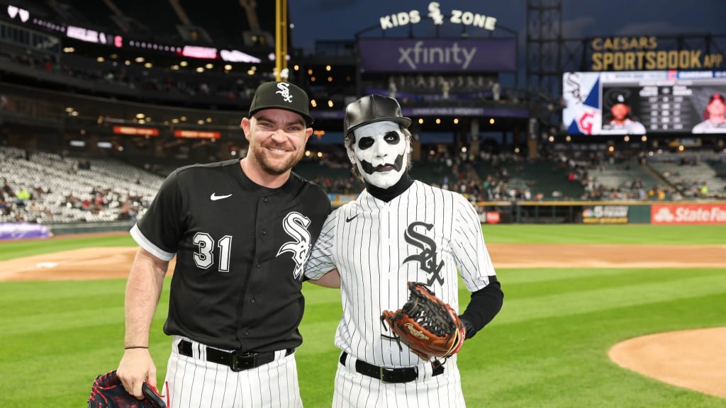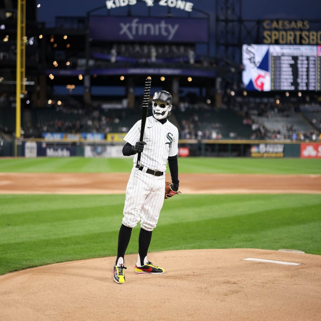 "Was that ... a ghost throwing the first pitch?" -- that's what some in the stands may have asked after watching a figure in a pinstriped White Sox jersey and matching face paint climb up to the mound to deliver a strike prior to Thursday night's Guardians vs. White Sox game at Guaranteed Rate Field.