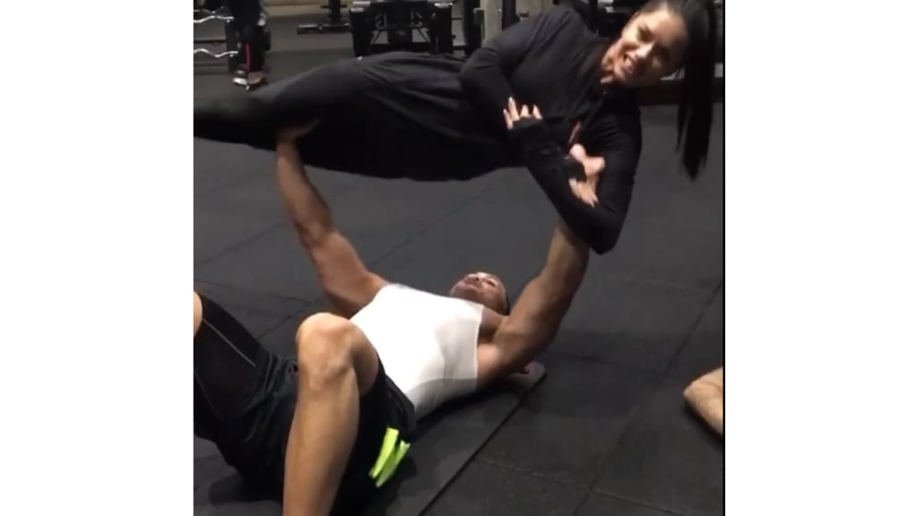 Working out with Kirk Myers' Dogpound -- perhaps in New York, where the gym is located, but more likely Miami, site of this year's Super Bowl and which the Instagram post hashtagged -- the Yankees slugger got to work by bench pressing former Victoria's Secret model Adriana Lima. This is how the rich and beautiful live.