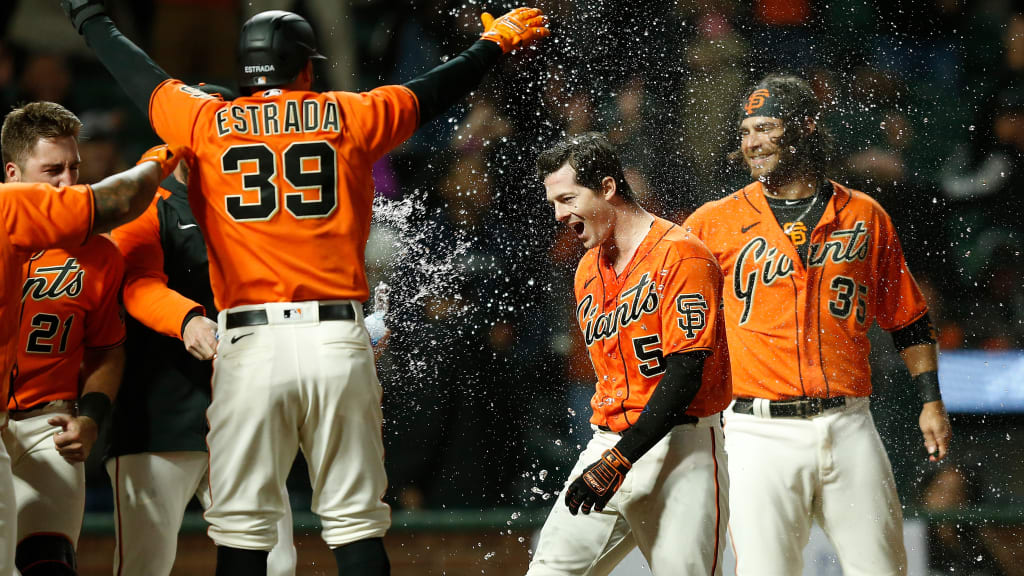 Aug. 14 vs. PIT, Thairo Estrada: The Giants and Pirates were tied, 6-6, entering the ninth before Pittsburgh knocked a run across to take a one-run lead. But Evan Longoria led off the bottom of the inning with a single, and the Giants were back in business. Yastrzemski grounded into a force out at second, reaching first. Then Estrada hit the first pitch he saw from Wil Crowe out to left-center. It was the first walk-off home run of Estrada’s career and the team’s second in a month. WATCH >>