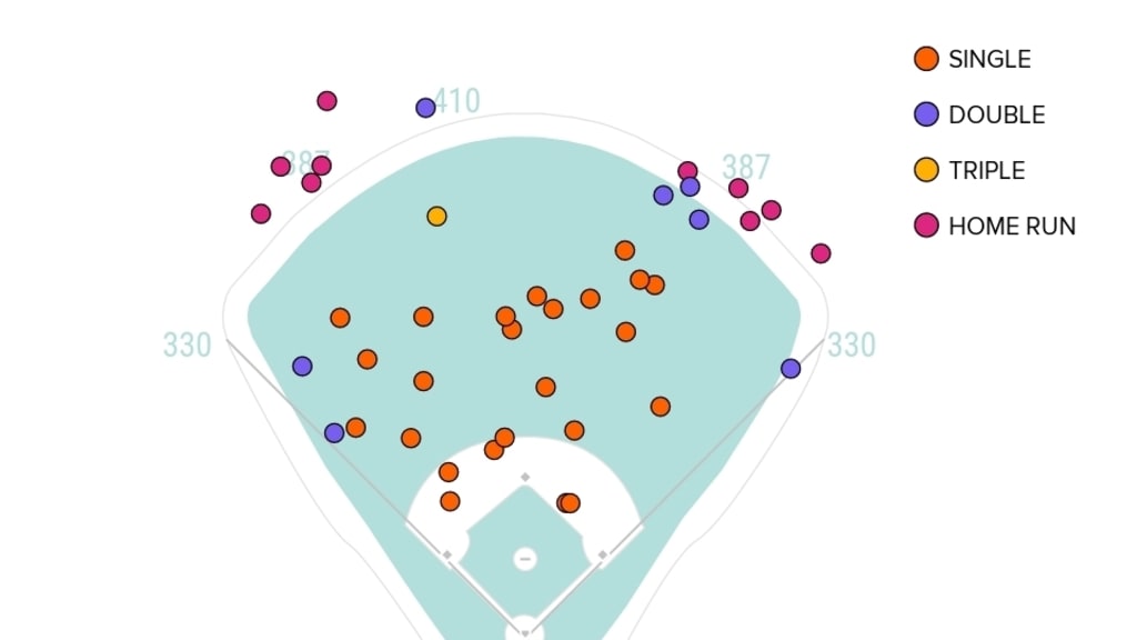 You can set that worry aside, too. About a third of his base hits in 2022 have been to right field, compared to a previous career high of 26.1% in 2021 (and the 17.8% clip he posted in 2018.) His hard-hit rate on opposite-field batted balls is a career-high 51.3% – which is also 7th-highest in the Majors (min. 25 batted balls) and just behind teammate Aaron Judge (51.4%), the perennial Major League leader in hard-hit rate.