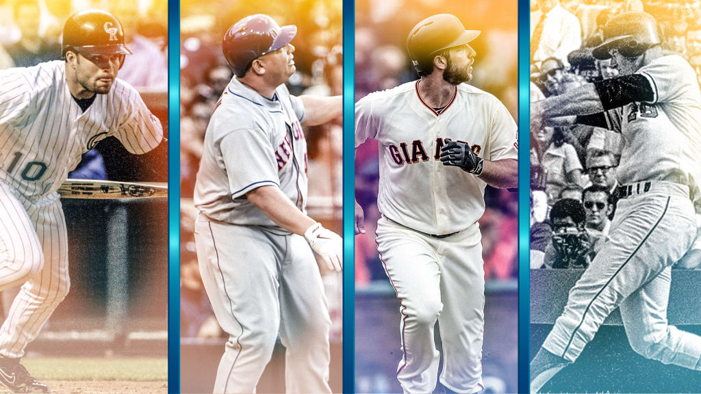 While Hampton didn’t live up to the eight-year, $121 million contract that he signed with the Rockies in December 2000, the thin air of Colorado worked wonders for his bat. Hampton didn’t have a single homer in 449 career plate appearances before joining the Rockies, but he hit 10 -- and slashed .315/.329/.552 -- in two seasons with the club, at one point going deep in three straight at-bats spanning two starts in June 2001. That feat wasn't duplicated until 2018, when Michael Lorenzen did it for the Reds.