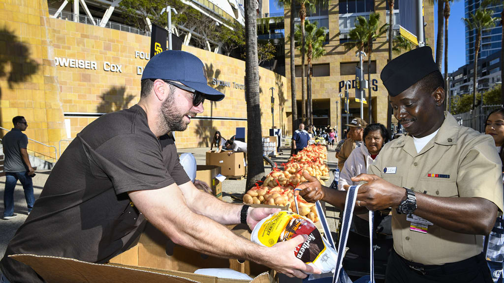 More than 600 full Thanksgiving meals -- turkeys and side dishes -- were distributed to underserved families from the neighborhoods nearest to Petco Park, in partnership with the San Diego Food Bank and its direct distribution partners, including King Chavez Elementary School, Kimbrough Elementary School and Mariner’s Park on Naval Base San Diego.
