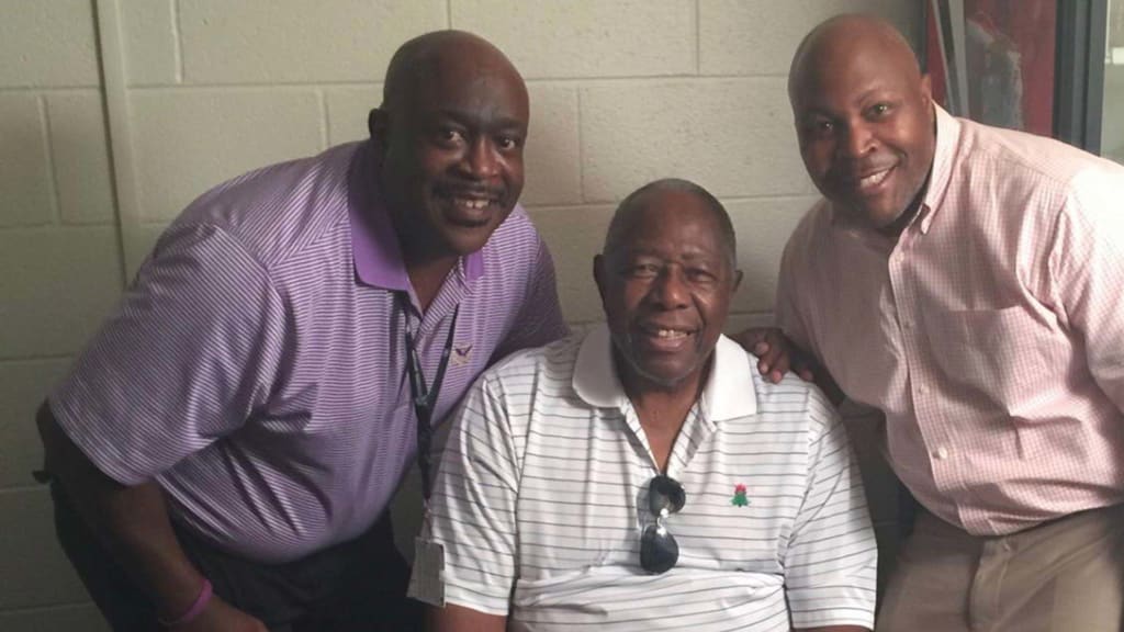Egins, a Columbus, Ga., native who graduated from the University of Georgia, was in graduate school at Florida A&M University. Egins’ mother and the wife of the Braves’ Triple-A manager, the late Jim Beauchamp, worked together at a hospital. Egins would visit Beauchamp’s house during Christmas. Aaron at the time was running the Braves’ Minor League system.