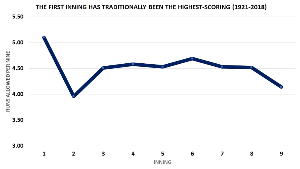 The first inning was the highest-scoring every single year from 1962-97. It was the highest-scoring inning each of the last nine seasons, from 2010-18. It is, again, the highest-scoring frame more than 90% of the time, historically. In 2019: It's not.