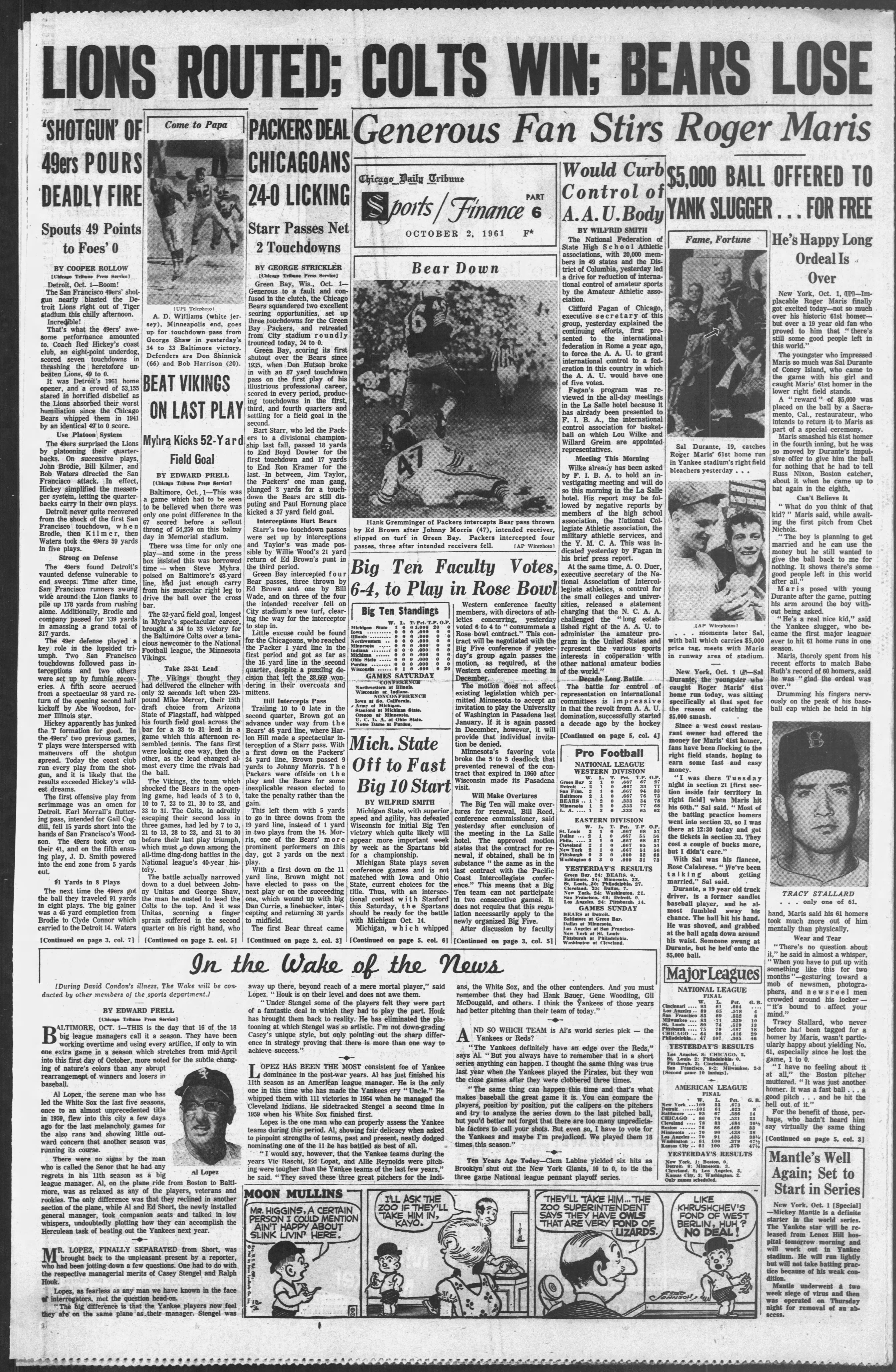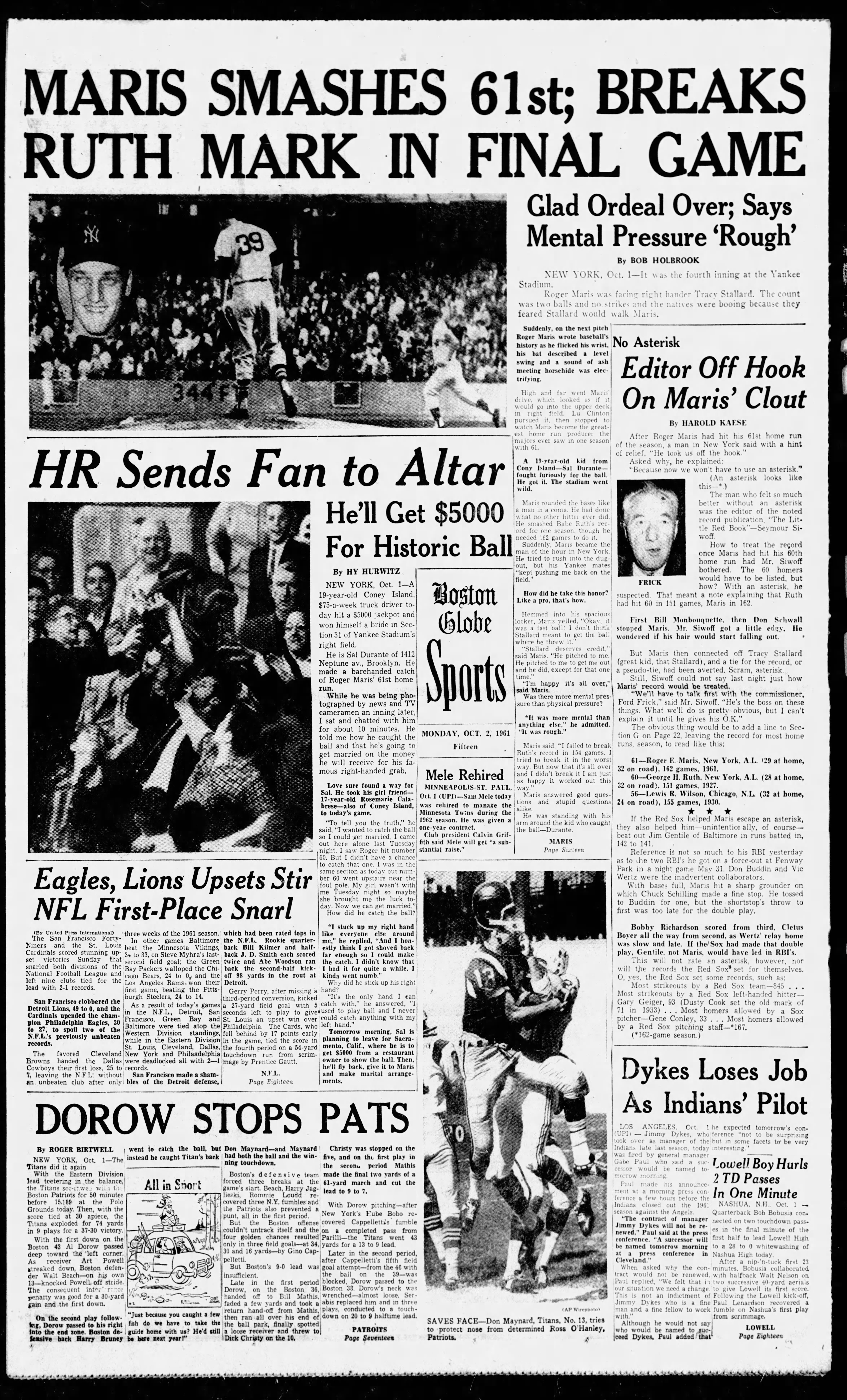 “Maris Smashes 61st; Breaks Ruth Mark in Final Game” – Boston Globe