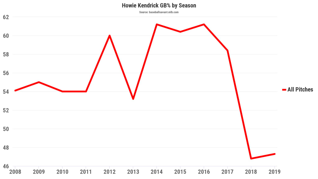 It's safe to say that's changed. Between 2006 and 2017, Kendrick's ground ball rate was 55.8%. Over the last two seasons, that's 47.4%.
