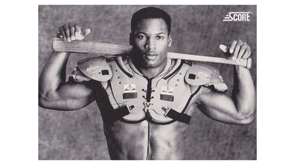 While there were four Bo Jackson cards in the 1990 Score set, the card depicting a shirtless Jackson wearing football shoulder pads and holding a baseball bat behind his head stands out from the rest. See the card >