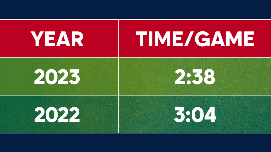 When comparing the average nine-inning game time from the first half of 2023 to the first half of 2022, we see a decrease of 26 minutes:
