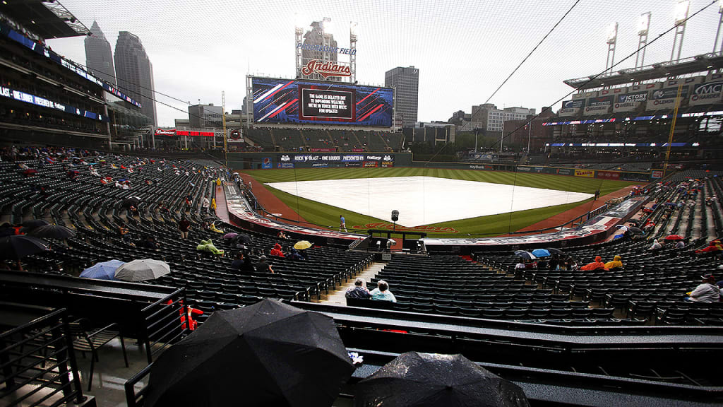 CLEVELAND -- The Indians and Angels are in a rain delay before the start of Sunday's series finale at Progressive Field. The Tribe is seeking a four-game sweep, while the Halos are looking to snap a nine-game skid.
