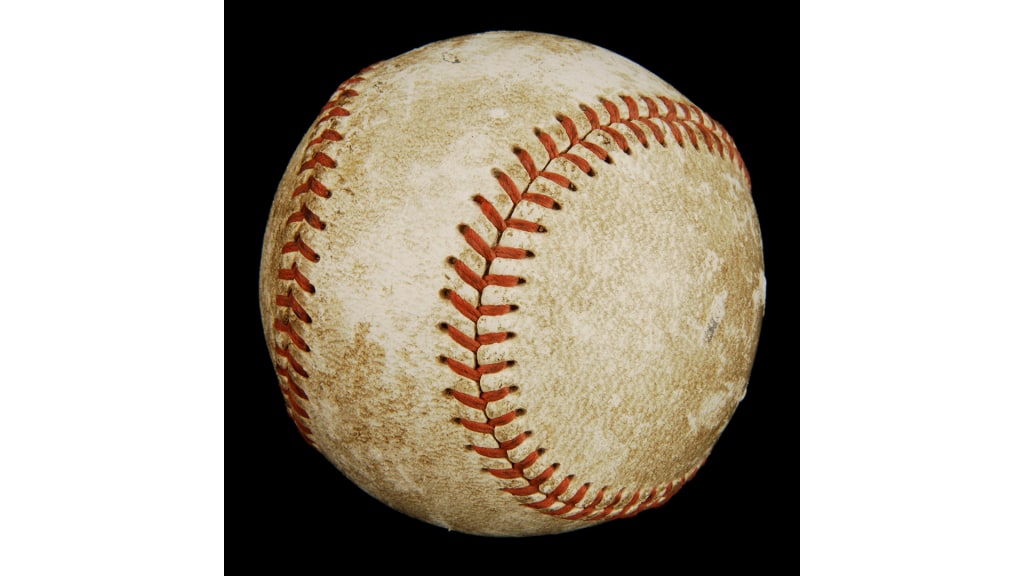 Fun facts: On April 16, 1940, Indians right-hander Bob Feller threw this ball during his no-hitter against the White Sox. His 1-0, eight-strikeout victory remains the only Opening Day no-hitter thrown in Major League history.