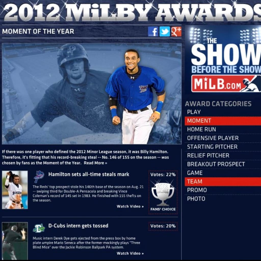 Dye's moment would later show up as a question on "Who Wants to Be a Millionaire" and was voted one of the top MiLB highlights of 2012 -- right behind Billy Hamilton setting the Minor League stolen base record.