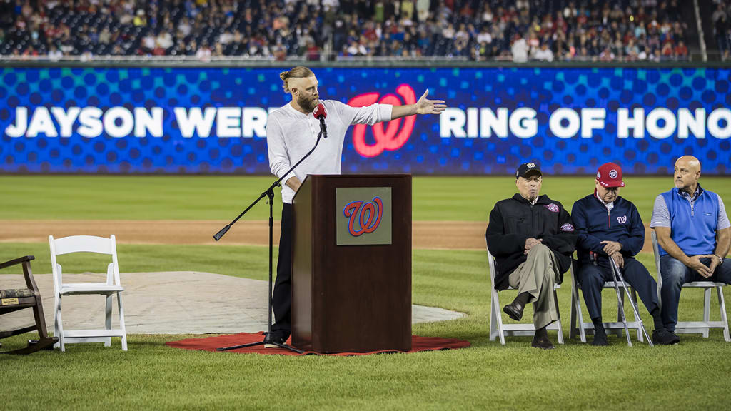 WASHINGTON -- Jayson Werth has done a lot of reflecting lately, taking a moment to consider all he accomplished in a Nationals uniform. Neither when he started his career in 1997, nor during his first meeting with the Nats as a free agent in 2011, could he have ever expected to be inducted into the Ring of Honor at Nationals Park. But on Saturday night, his name and No. 28 were unveiled just below the third deck in foul territory on the first-base side.