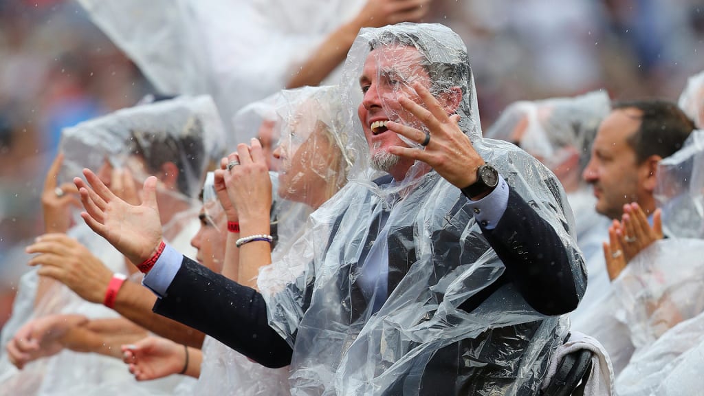 "It's about fitting that the weather happened the way it did, because I always had to wait until the ninth inning to pitch. So why not wait a little longer?" he joked.