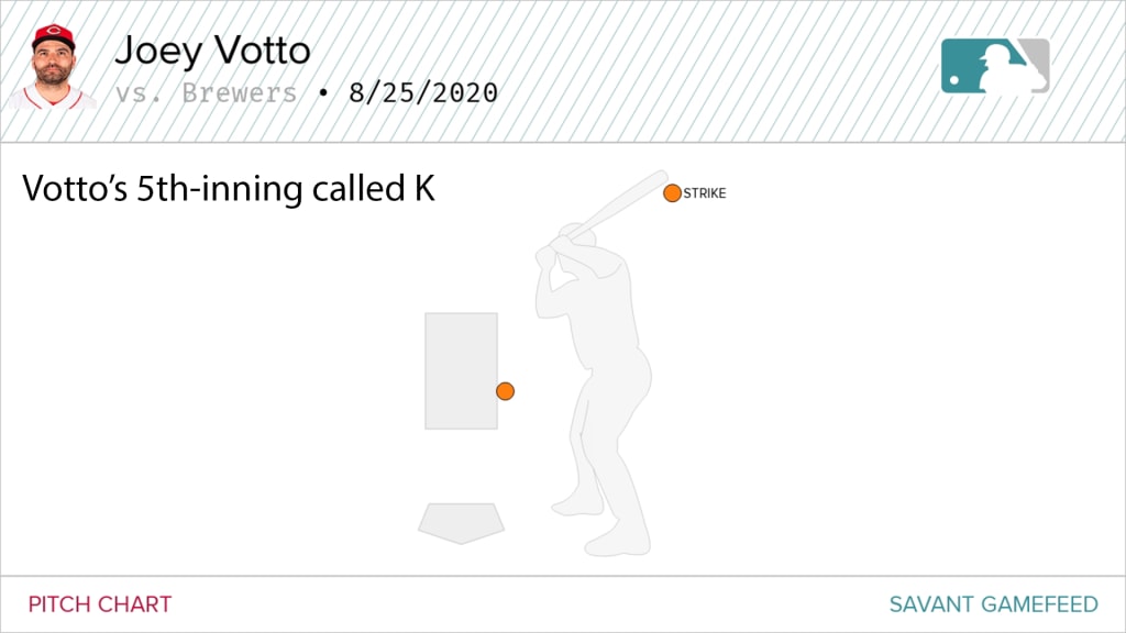 Was it the fifth-inning strikeout that angered him? Votto was called out on an inside fastball so borderline that a case could be made that it barely missed the plate, or that it barely grazed the corner. Livensparger picked the latter. Votto looked displeased.