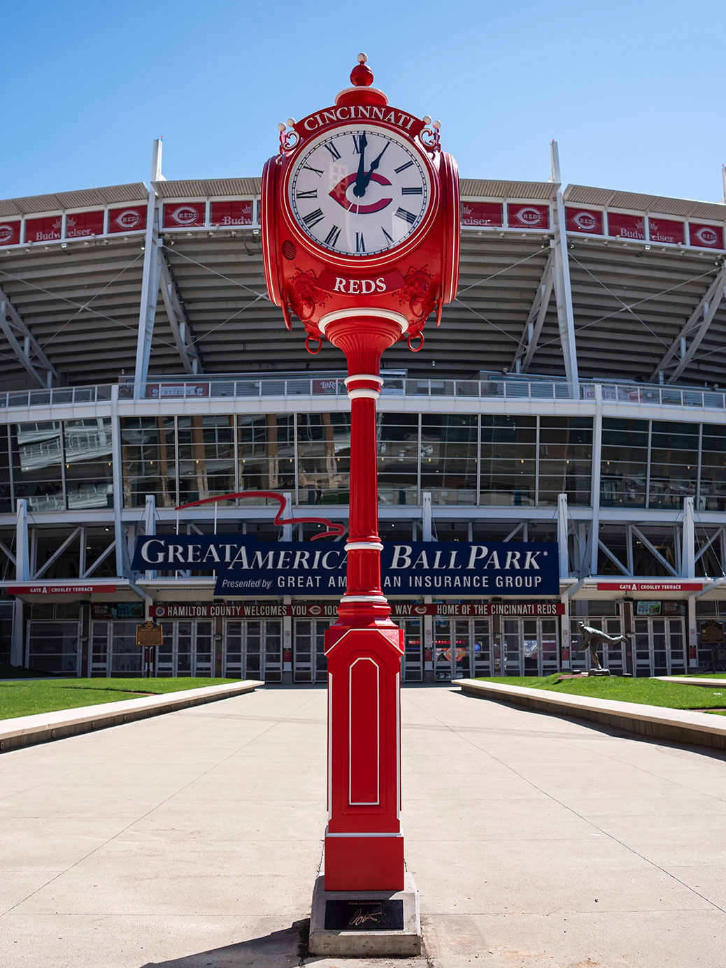 At the clock's base is a bronze that simply reads: “Thank you Cincinnati," with Votto’s signature.