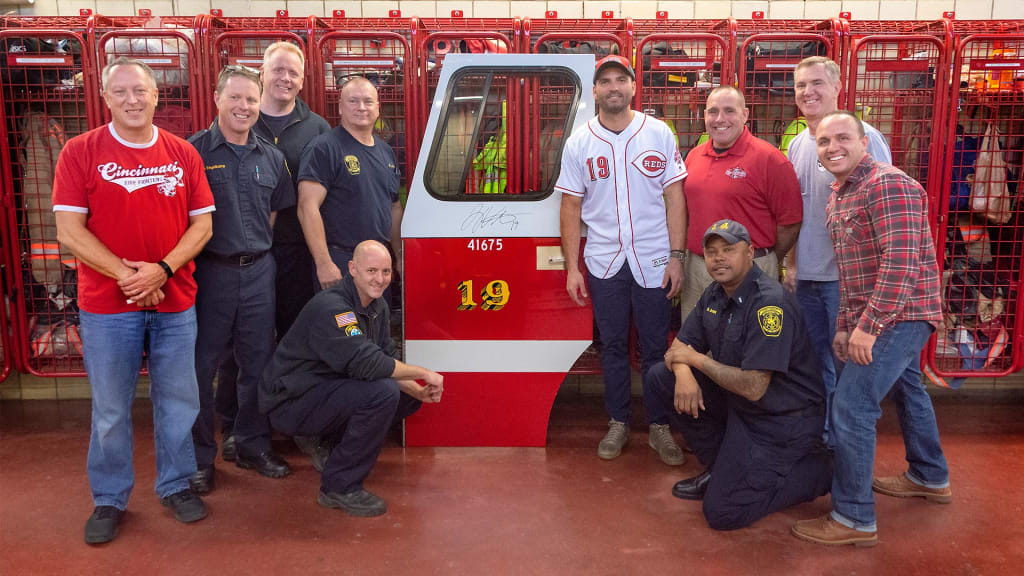 Votto agreed to visit and meet with the firefighters while he was in Cincinnati for Redsfest. He spent about 30 minutes at the firehouse meeting the firefighters, taking photos and signing the No. 19 firetruck.