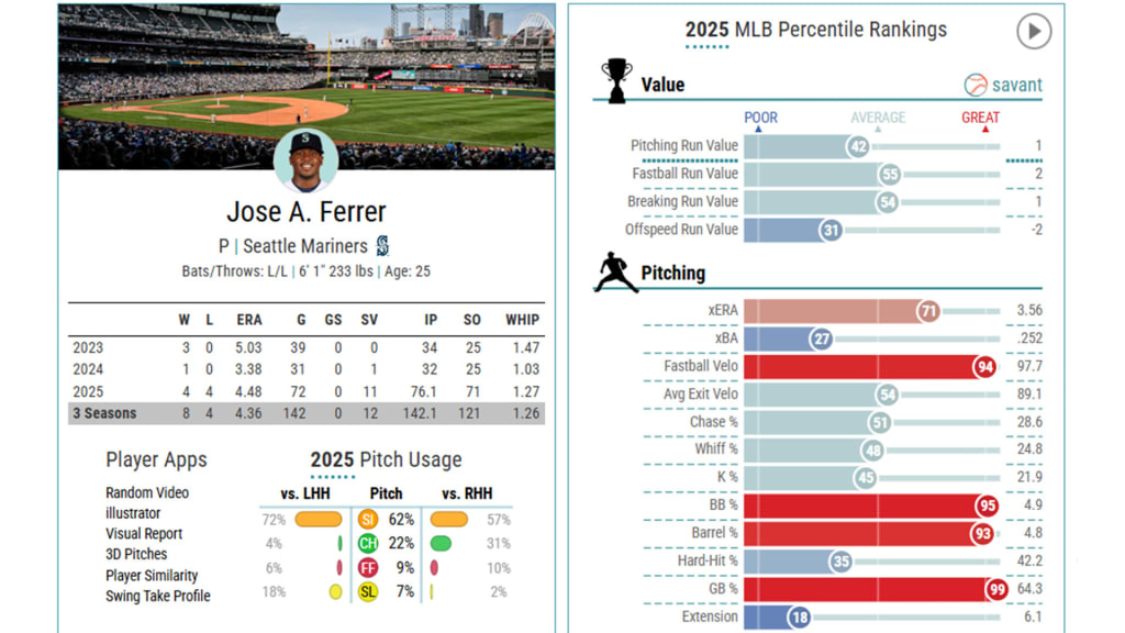 This is where Ferrer should help, and not just because of handedness. The 26-year-old checks most boxes that the Mariners assess when scouting external talent.