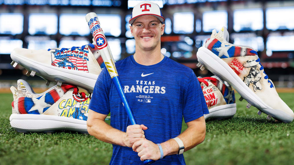 ARLINGTON -- Josh Jung's glove has the letters “CAP” stitched onto the outer parts of the webbing. The water bottle he carries around has a Captain America logo, and a miniature Captain America shield sits on the top shelf of his locker at Globe Life Field.