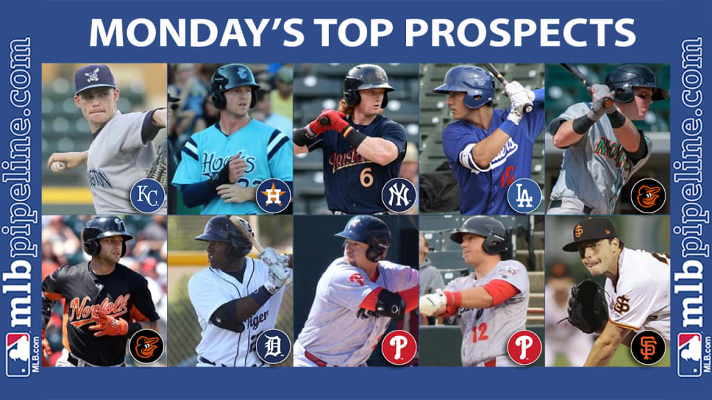 • No. 34 overall prospect Cody Bellinger (Dodgers' No. 1) made headlines on Sunday by going deep twice in his first start for Triple-A Oklahoma City. The 21-year-old first baseman continued to swing a hot bat on Monday as he went 2-for-5 with another home run, his 26th of the season. Over his final 10 regular-season contests between Double-A Tulsa and Oklahoma City, Bellinger -- named to his second Prospect Team of the Week on Monday -- batted .432 with seven home runs, 12 runs scored and 15 RBIs.